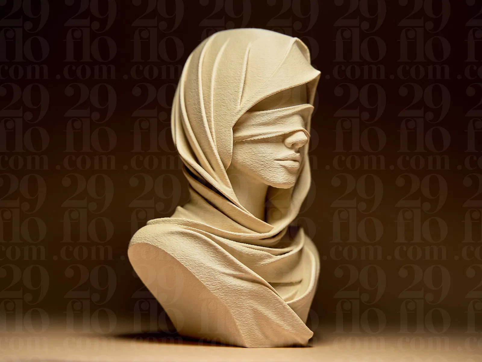 Mẫu tượng chân dung người phụ nữ bịt mắt phong cách hiện đại, hợp để trang trí bàn làm việc hoặc không gian nhà. Có gợi ý setup in cho mẫu cao 15 cm, dùng PLA và supports Tree (auto), kèm thông số fuzzy skin.