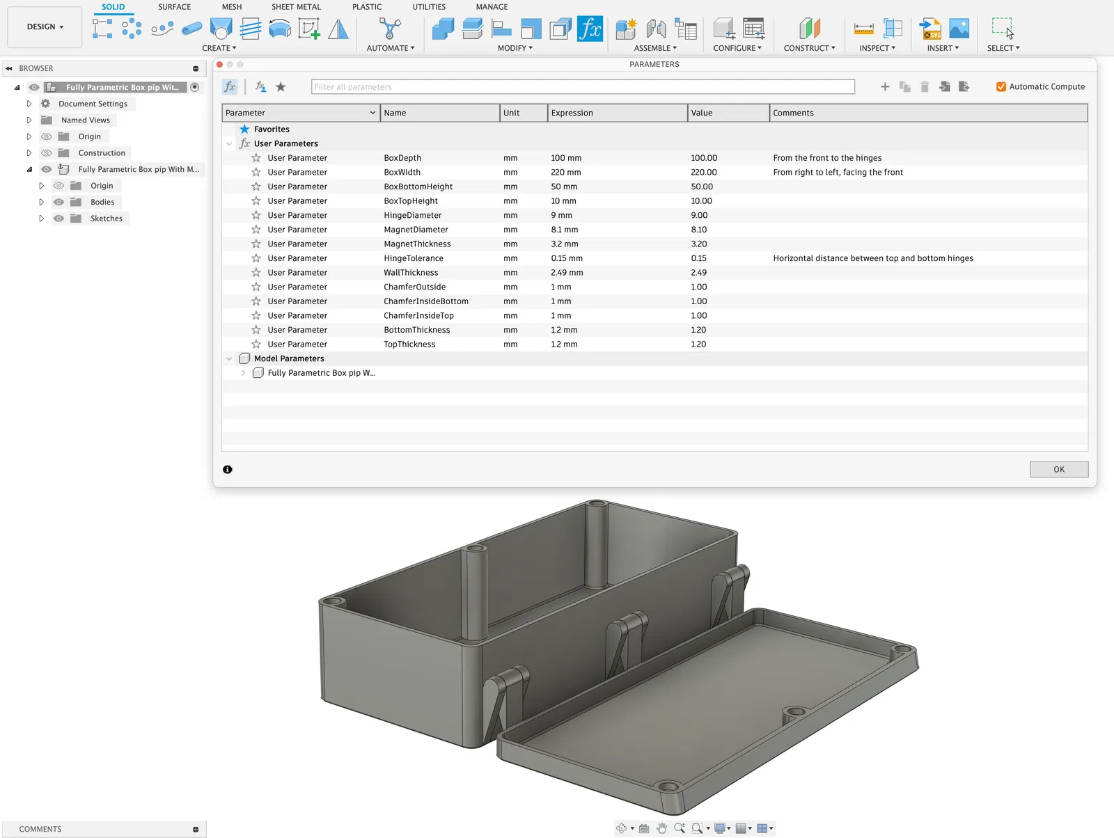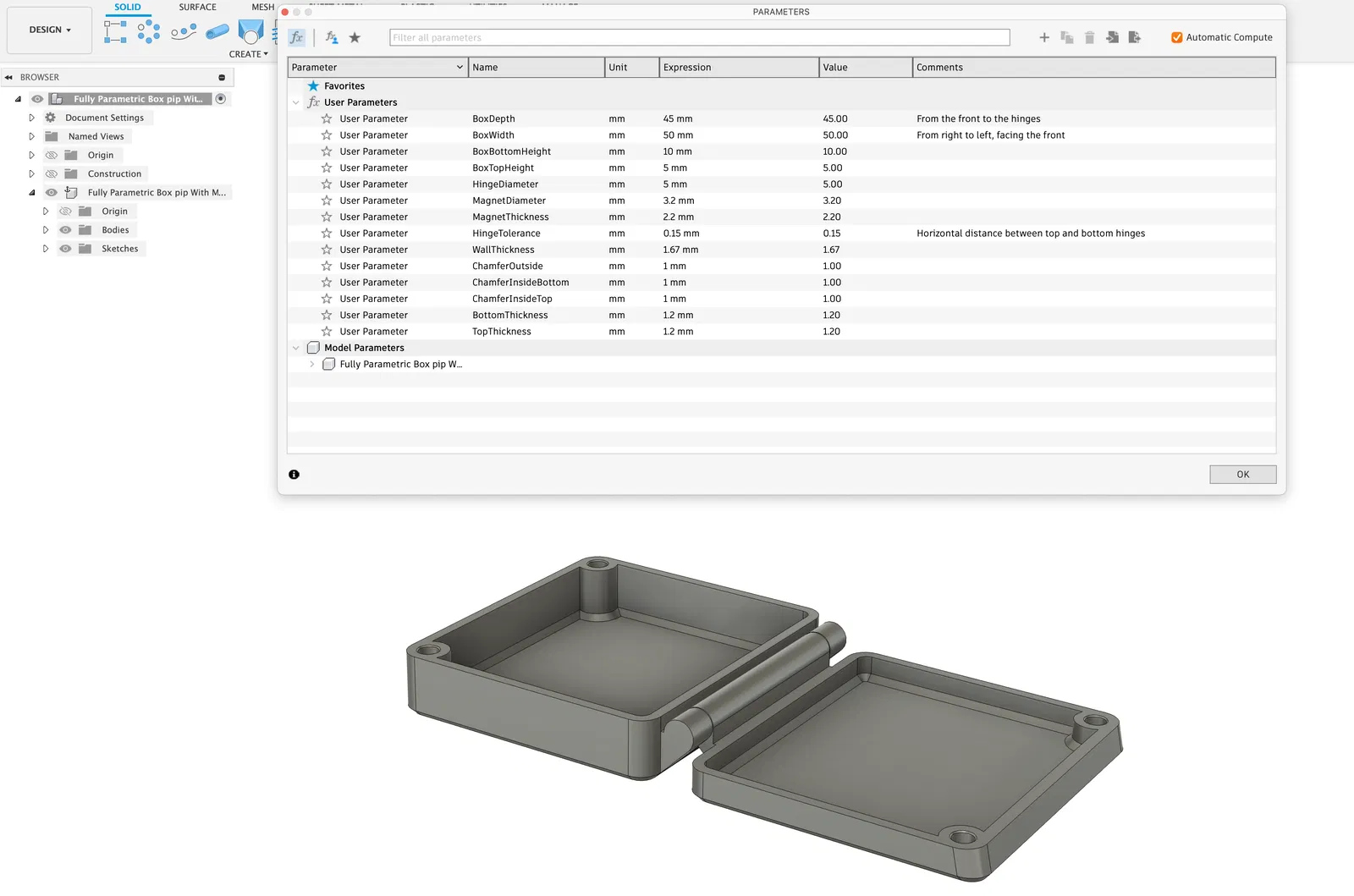 Hộp Nam Châm Print-in-Place Parametric | Fusion 360
