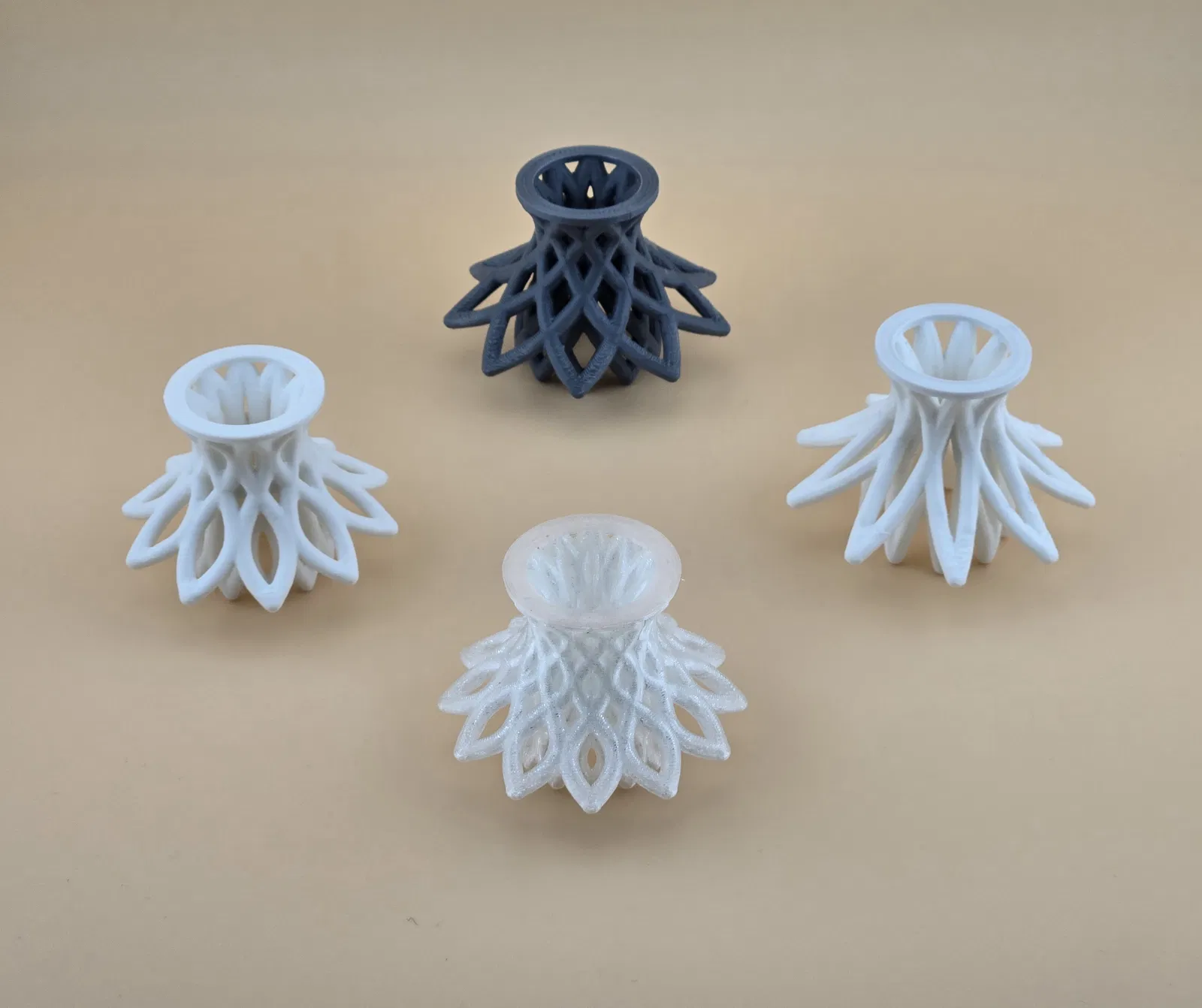 Thêm chút không khí lung linh và vẻ thanh lịch cho đèn LED tea light của bạn với những nắp cover hoa hình học in 3D đầy phong cách này. Chọn trong 4 mẫu thiết kế khác nhau. Rất hợp cho Valentine, dịp lễ, tiệc tối, hoặc những buổi tối ở nhà ấm cúng. Bạn có thể in với nhiều màu filament để hợp chủ đề theo mùa hoặc hợp decor cá nhân. Dễ in, trưng bày lên là xinh ngay!
