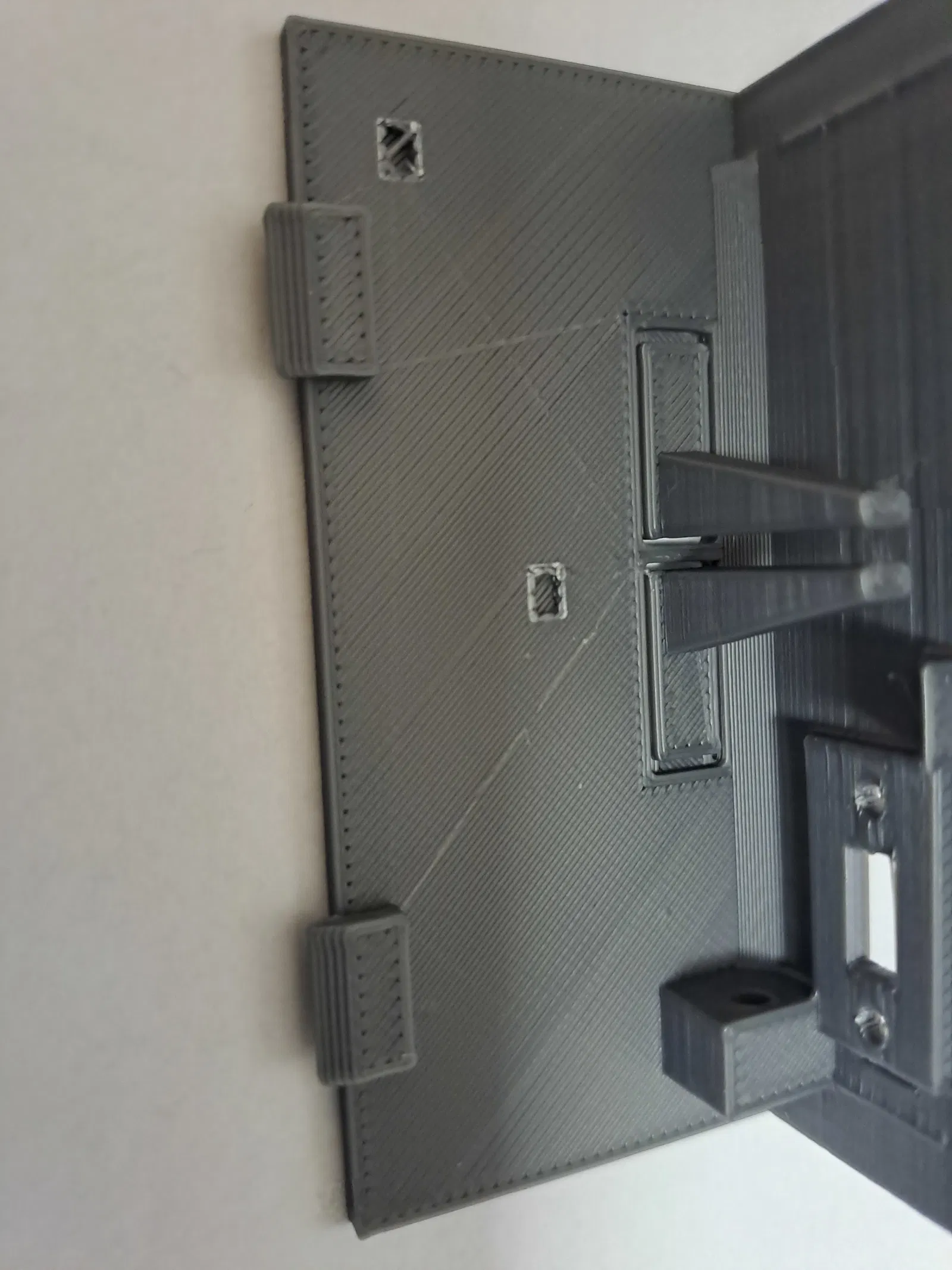 Ở phần nắp trên của enclosure nói trên, bẻ bỏ hai phần nhựa thừa (xem hình). Mình không remix mẫu gốc vì làm vậy nhanh hơn nhiều ;-).