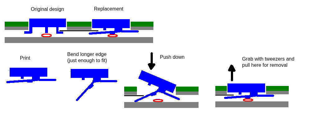 Tháo ra: Dùng nhíp kẹp vào cạnh dài hơn của nút rồi kéo ra.
