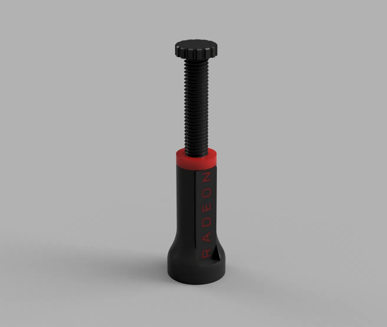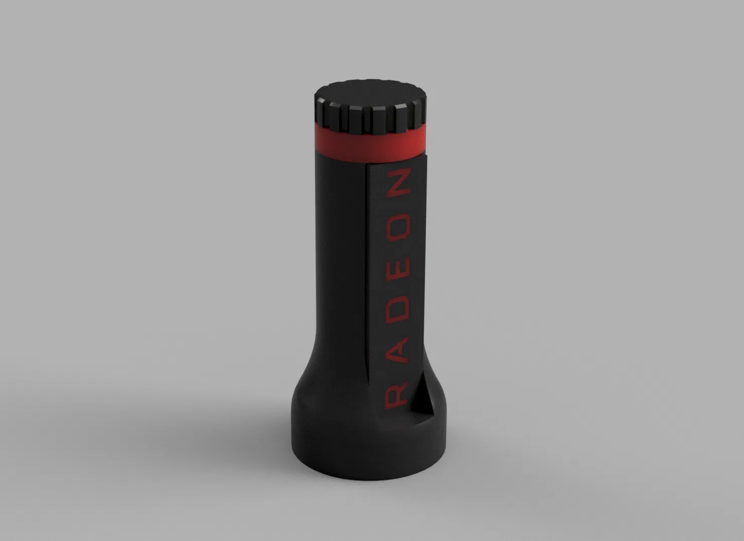 Mẫu giá đỡ/chống xệ cho GPU Radeon, chỉnh được chiều cao 70–120mm. Lắp ráp gồm gắn logo nvidia, dán spacer màu xanh vào thân chính, rồi lắp ốc/vít để canh độ cao. In 0,2mm layer, 5 walls, 40% infill, không cần supports.