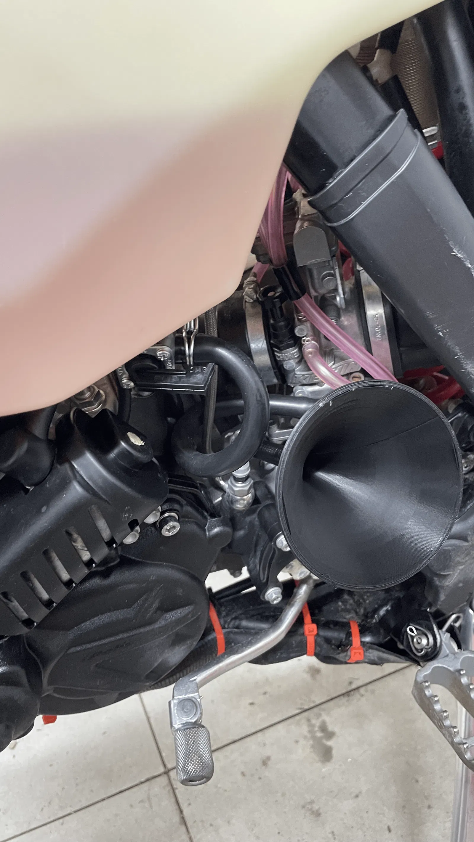 Phễu châm dầu có ren để vặn trực tiếp vào cổng châm dầu động cơ cho xe Rieju và Gasgas đời cũ. Gợi ý in: overhang không cần supports; nozzle 0.4 mm, layer 0.25 mm, phần ren 0.1 mm.