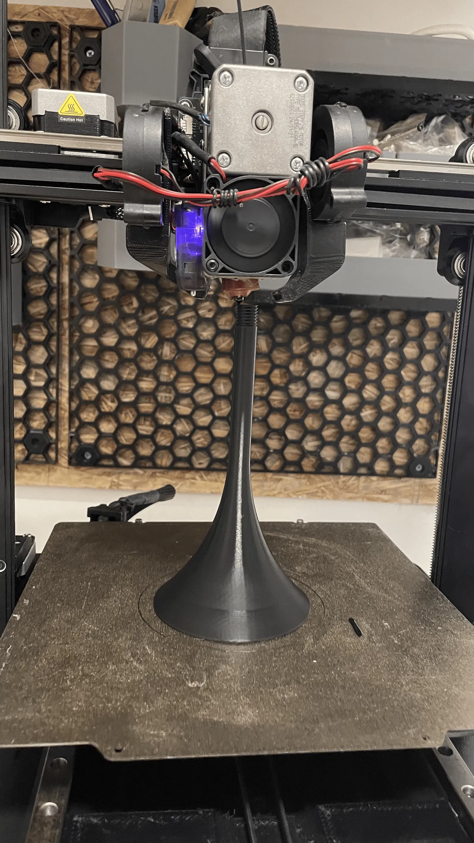 In cái phễu đúng như trong hình, phần overhang in ra ngon lành mà không cần supports.