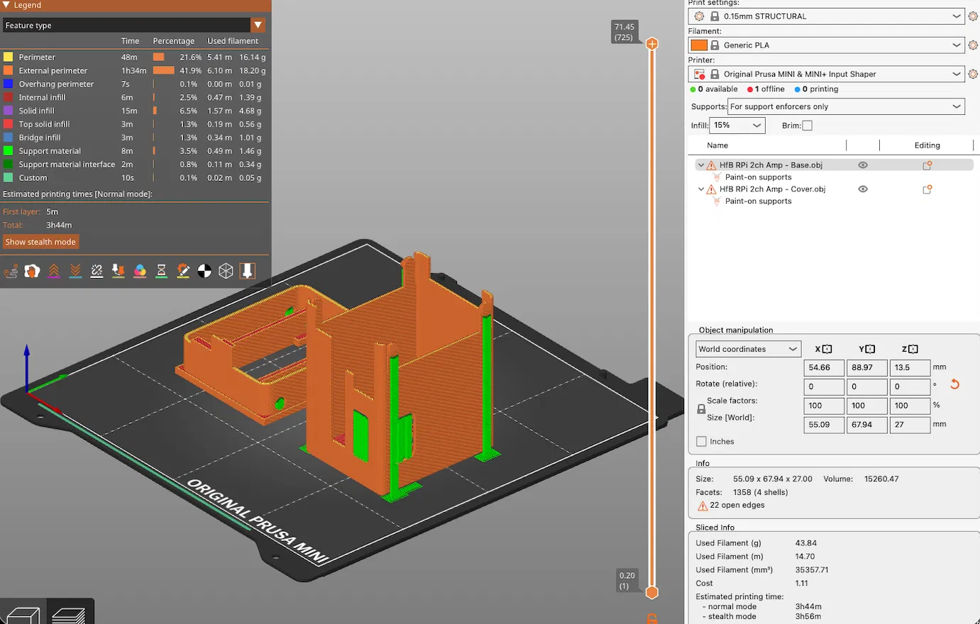 Mình dùng Sketchup để làm mẫu này vài năm trước, dùng vui và nhanh nhưng khá dễ sai với các model nhỏ, nên mới có ghi chú sửa lỗi và cảnh báo “22 open edge”. In vẫn ổn nha! Có thể mình sẽ làm lại bằng Onshape và xuất vài file .step sạch hơn.