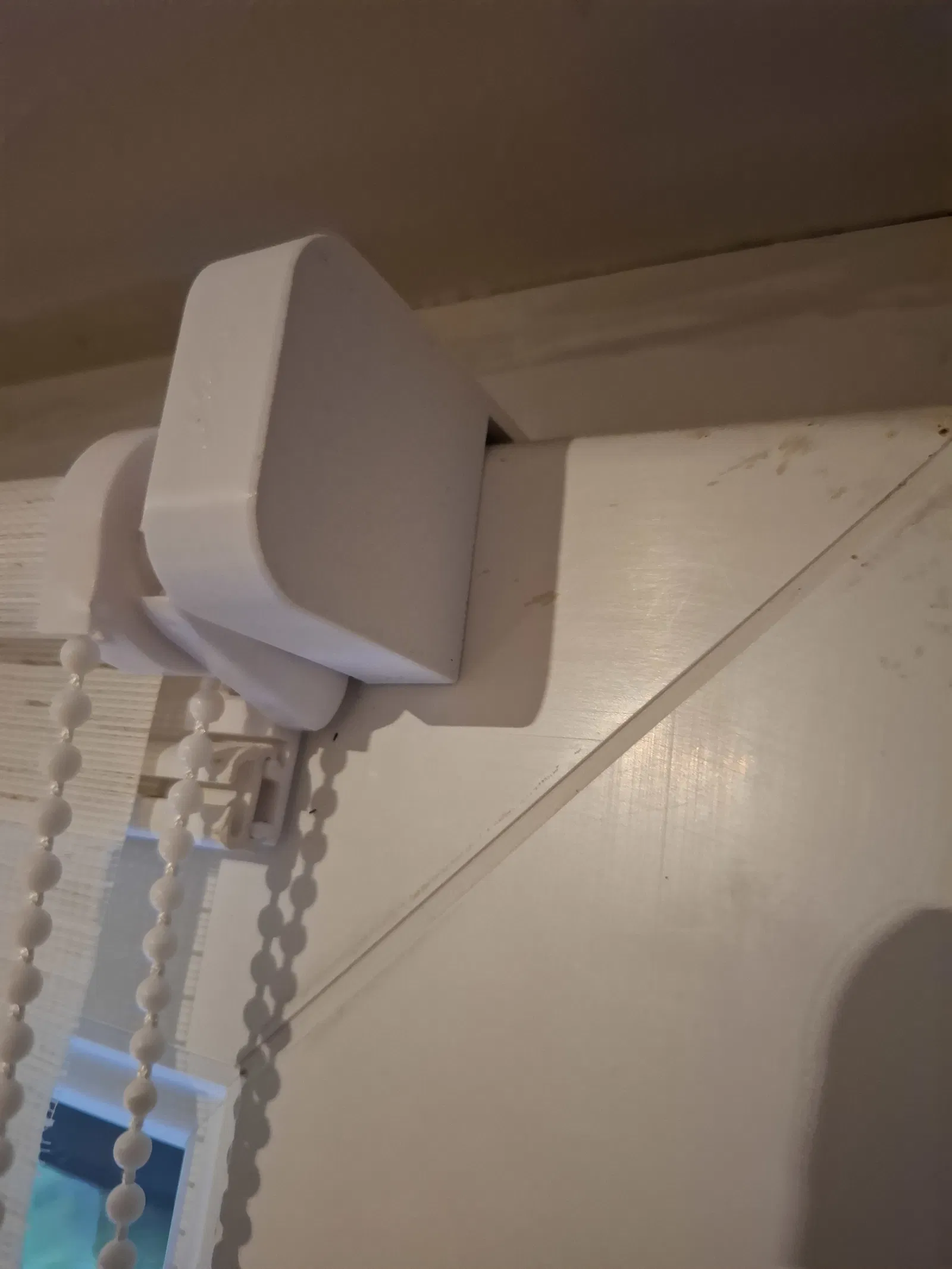 Mẫu Doorstop (miếng chặn cửa) giúp giữ cánh cửa đứng đúng vị trí, tránh để rèm cuốn (roller blind) bị chạm vào tường khi đóng/mở cửa. Thiết kế đơn giản, dễ in 3D và lắp đặt.