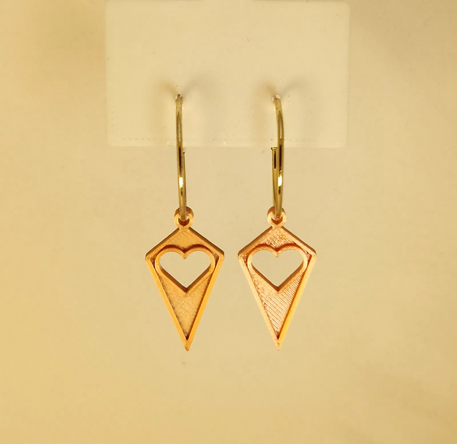 Bông tai hình học dáng kim cương với ô khoét trái tim, vừa hiện đại vừa lãng mạn. Thiết kế nhẹ, cân đối, bắt sáng đẹp; phù hợp làm quà Valentine/kỷ niệm và phối nhiều phong cách.