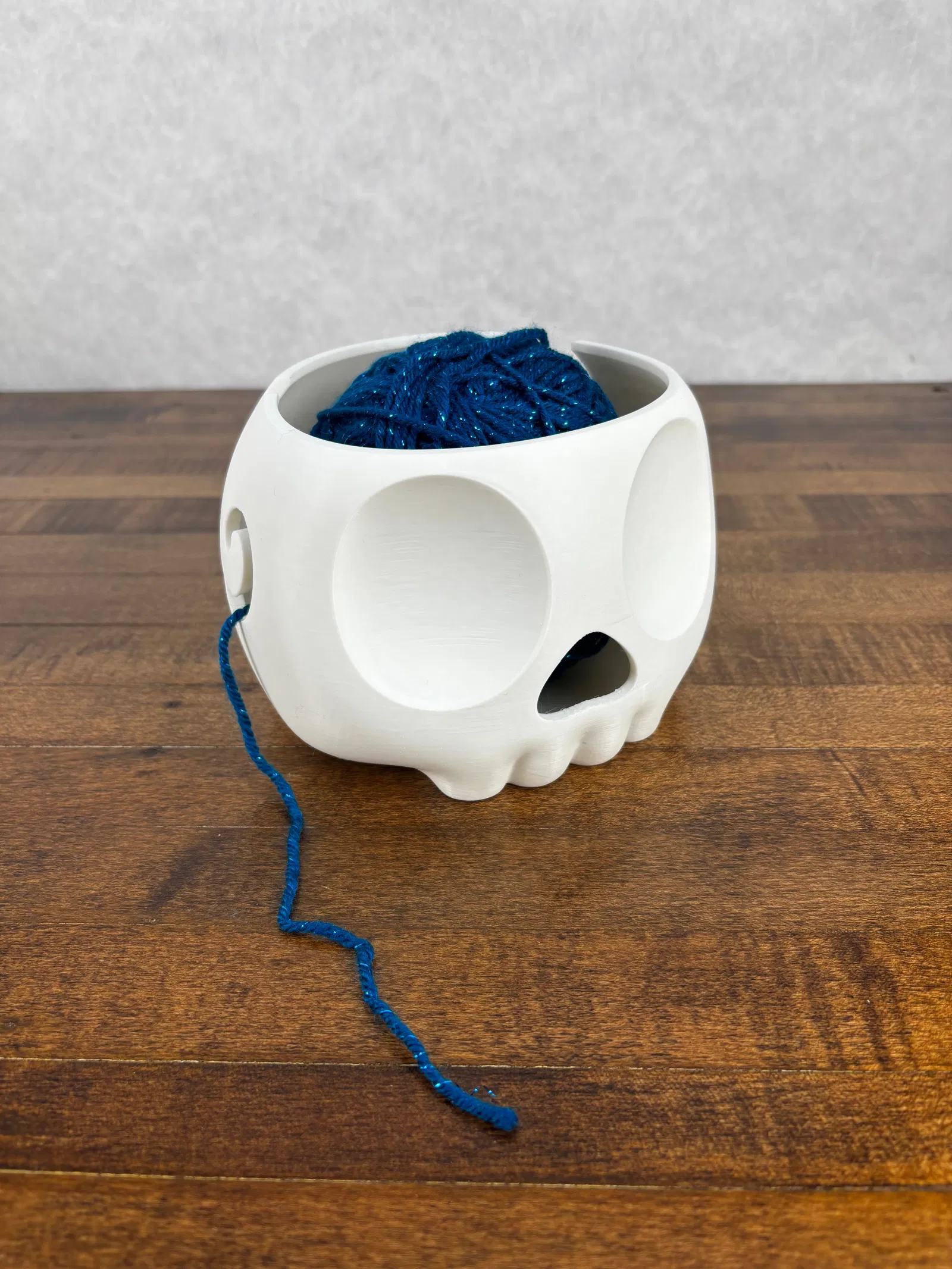Knitting bowl hình đầu lâu với 2 hướng cho sợi yarn đi ra: qua hốc mắt dạng swirls hoặc ở vị trí tai. Có đủ size nhỏ/vừa/lớn. Khuyến nghị in kèm Supports và tối thiểu 15% gyroid infill.