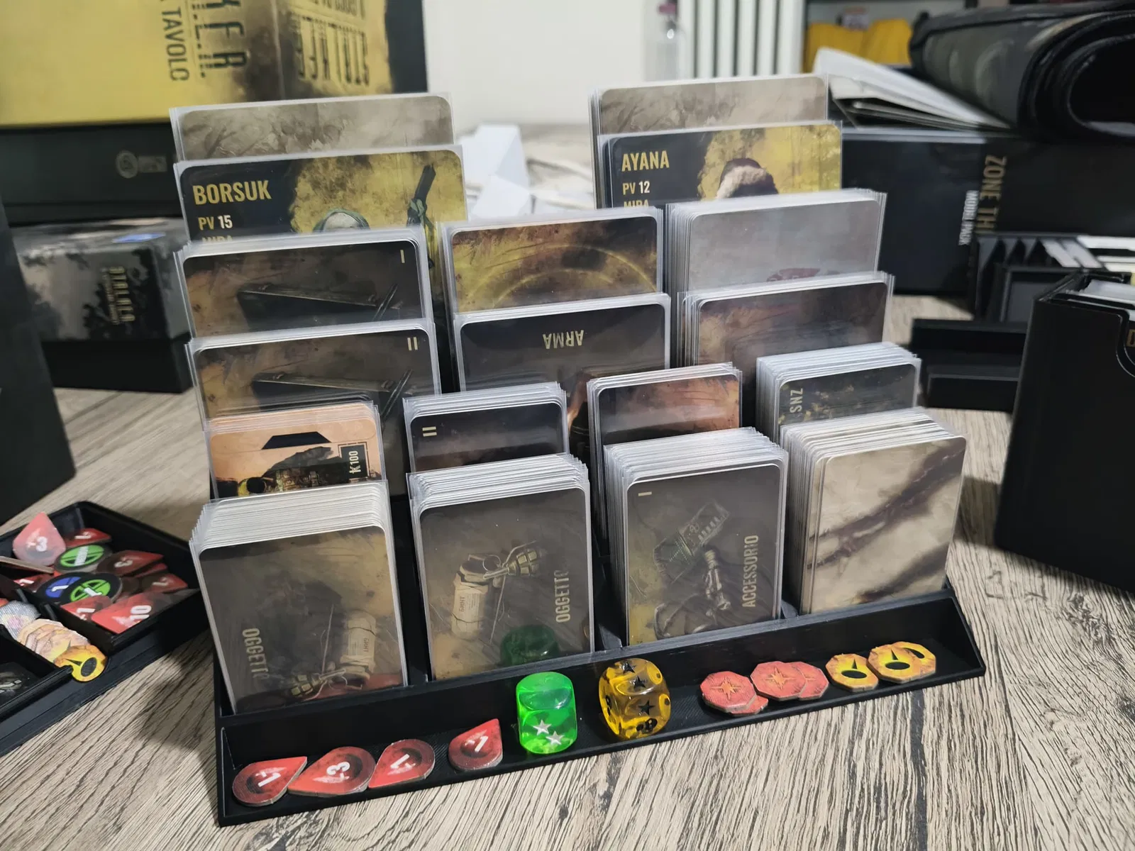 Món organizer in 3D đơn giản mà rất tiện, giúp sắp xếp gọn gàng bài của nhiều loại boardgame, LCG, dungeon crawler và RPG.