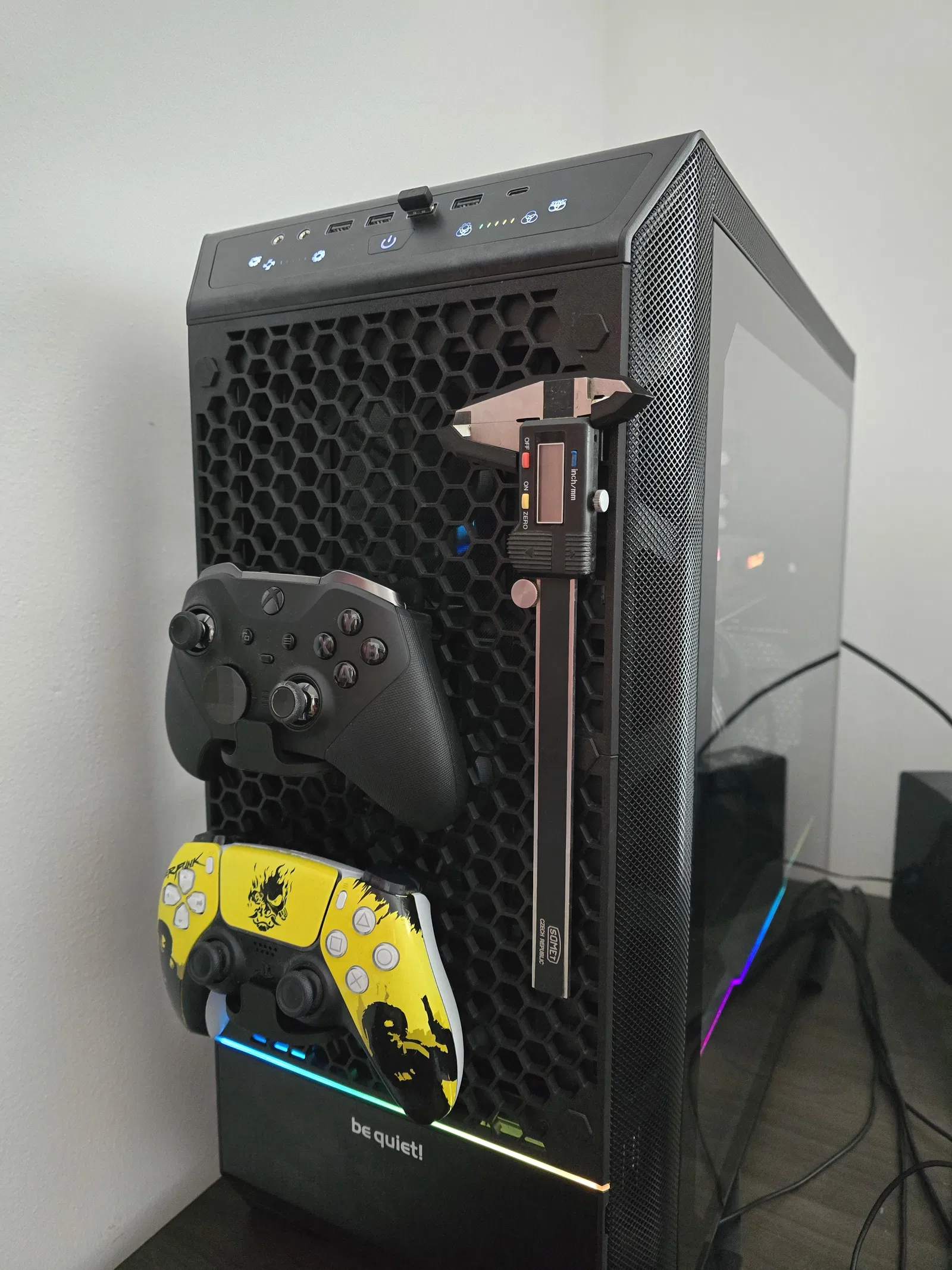 Bản mod cho Dark Base 901 Pro với tấm mặt trước honeycomb để gắn/phối thêm phụ kiện. Khuyến nghị in PETG, dùng thiết lập Speed 0,20; phần ốc/vít in 0,15 (structural) và cần 6 ê-cu M6.