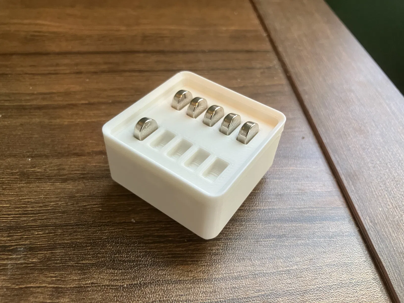 Khay pin LR41 theo chuẩn Gridfinity kích thước 1U x 1U x 3U, chứa 10 viên. Pin được đặt nông hơn nửa khe để dễ gắp nên không phù hợp xếp chồng. Có lip, không có lỗ magnet.