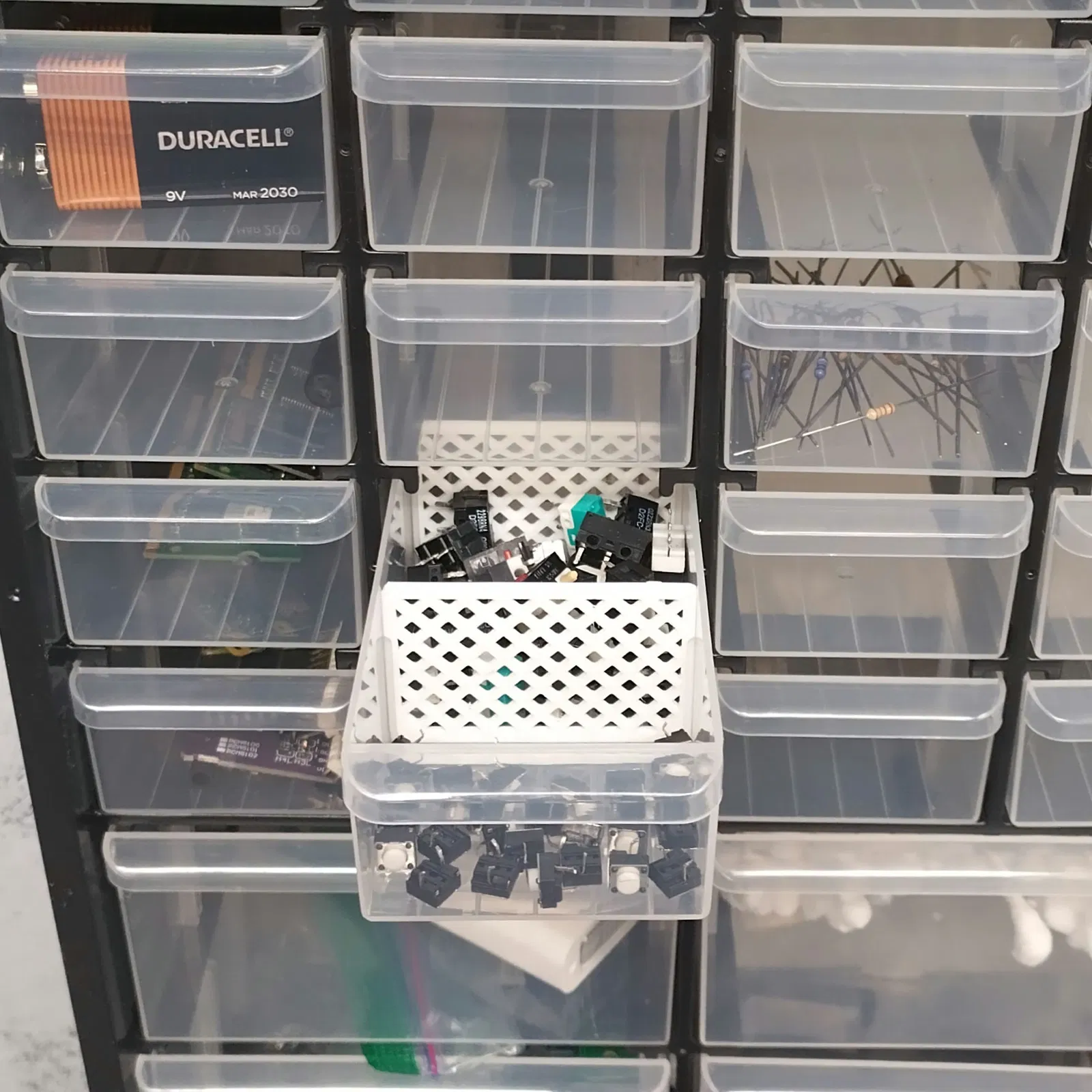 Vách chia cho Black & Decker Stackable Bin Drawers, đã test với BDST40730BK và BDST40739BK. Phù hợp ngăn kéo rộng 51mm, cao trống tối thiểu 30mm và có rãnh 2mm. Thiết kế lưới tiết kiệm nhựa.