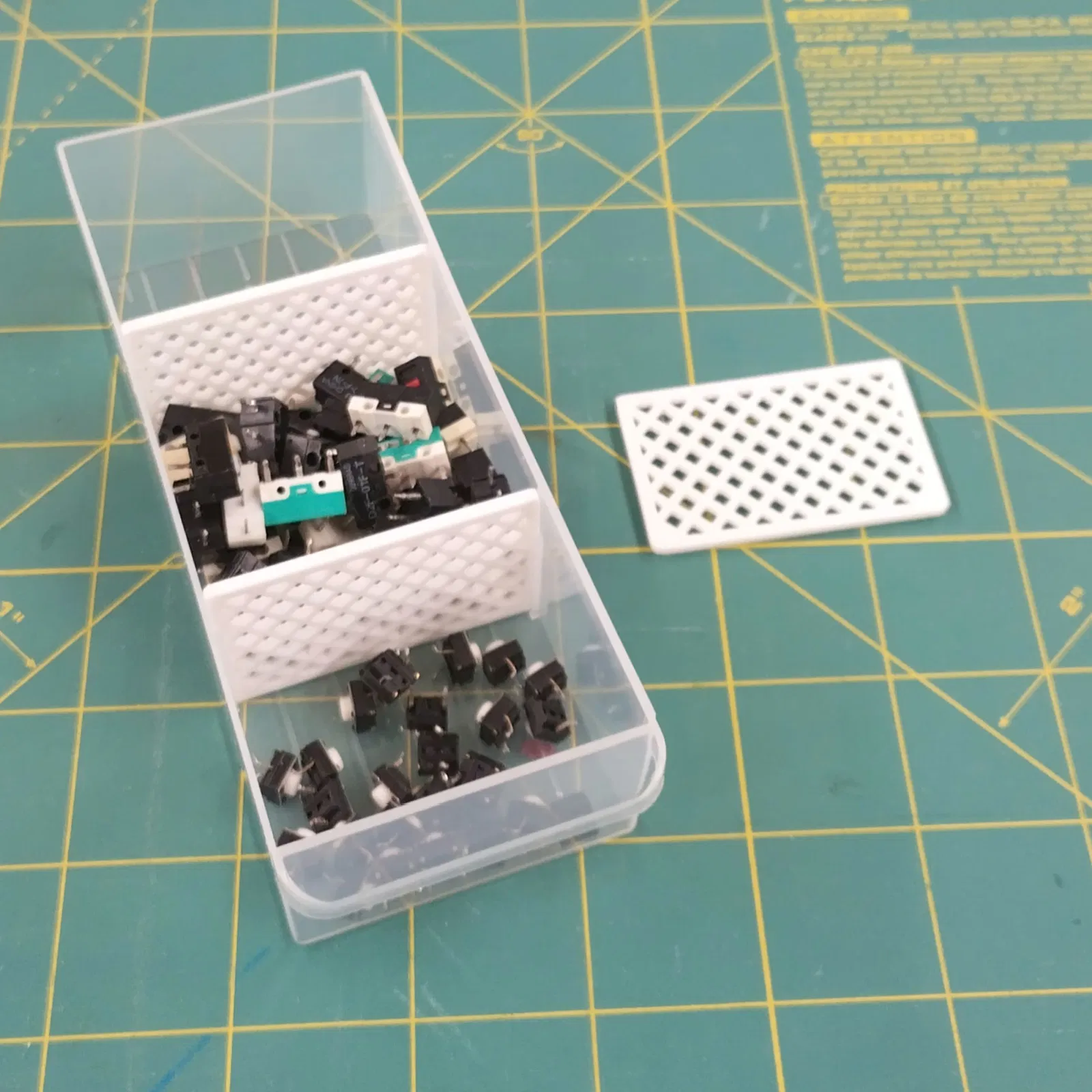 Miếng chia được thiết kế dạng lưới (grill) để dễ nhìn xuyên qua một chút, đồng thời giúp dùng ít nhựa hơn. Các mẫu minh họa ở đây chỉ là in bằng PLA màu trắng.