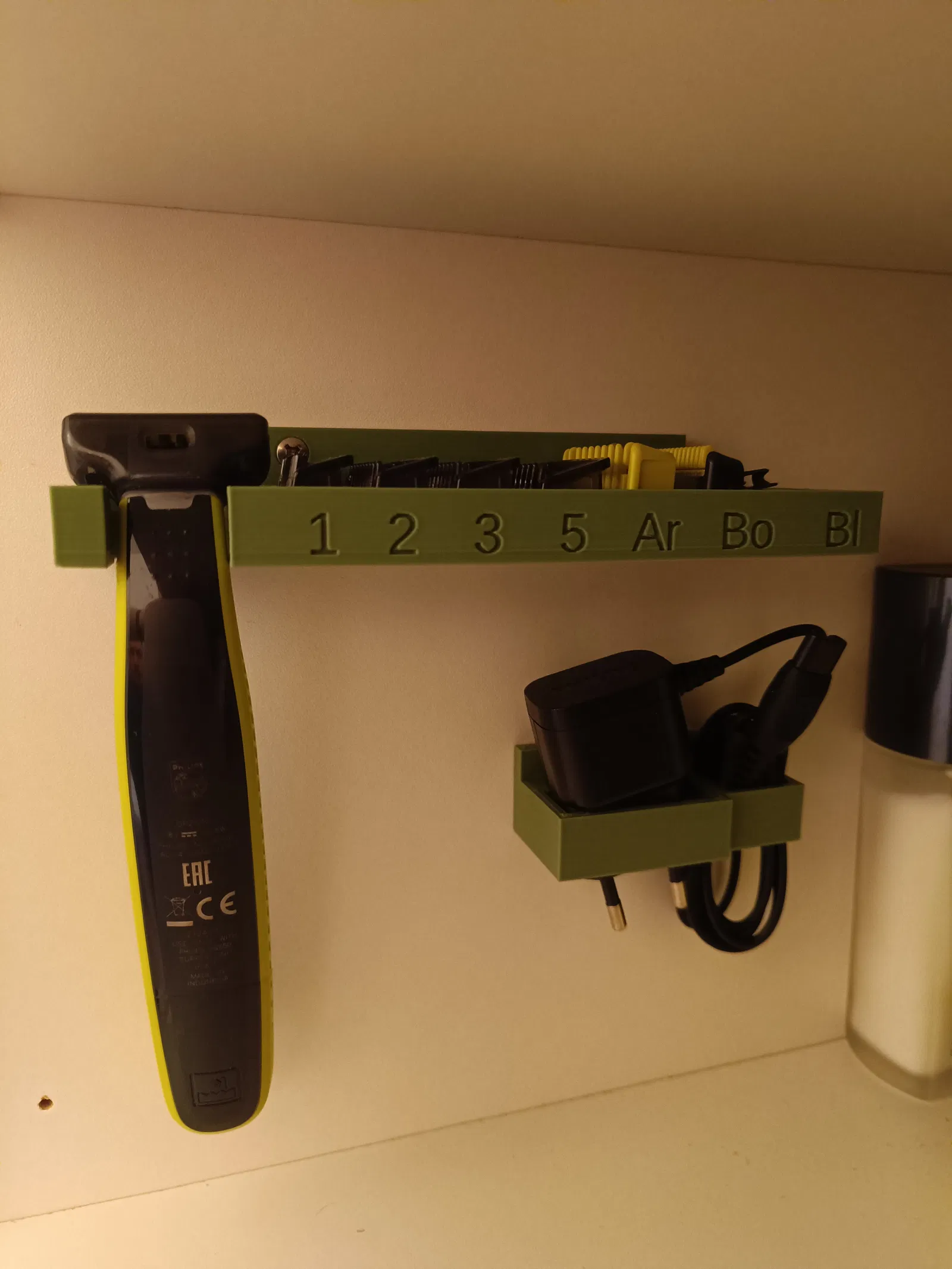 Giá đỡ dành cho máy OneBlade và các đầu/nắp gắn kèm, thiết kế để bắt lên mặt trong cánh tủ giúp gọn gàng, dễ lấy và cất. Phù hợp cho việc sắp xếp khu vực phòng tắm hoặc tủ đồ.