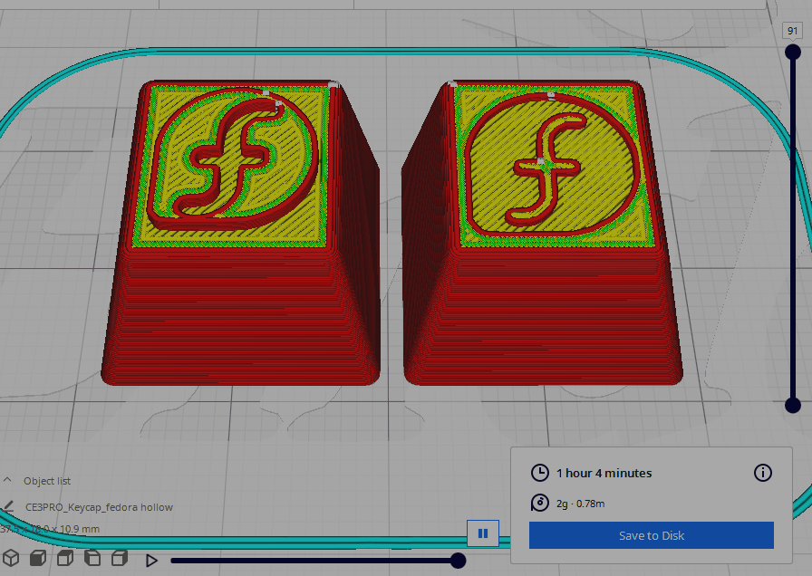 Keycap cơ 1U chủ đề Linux distro Fedora OS cho anh em mê mechanical keyboard. Thiết kế khắc chìm và nổi, có Test switch socket để thử trước; dùng với Otemu và thường tương thích Cherry MX. Khuyến nghị in SLA, FDM cũng được.