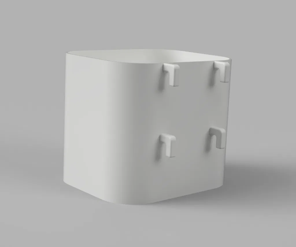Mình đã remix thiết kế này để thêm móc, giúp gắn hộp lên pegboard mà không cần phải dán móc. Vì vậy khi in sẽ cần supports.