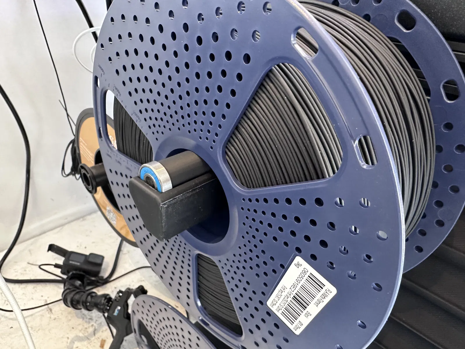 Mấy mẫu spool holder mình tìm được đều bị vấn đề võng xuống. Mình thử làm mẫu này ít bị võng hơn bằng cách đặt con ốc bắt mount ở phía trên và làm cái bracket cứng cáp hơn.