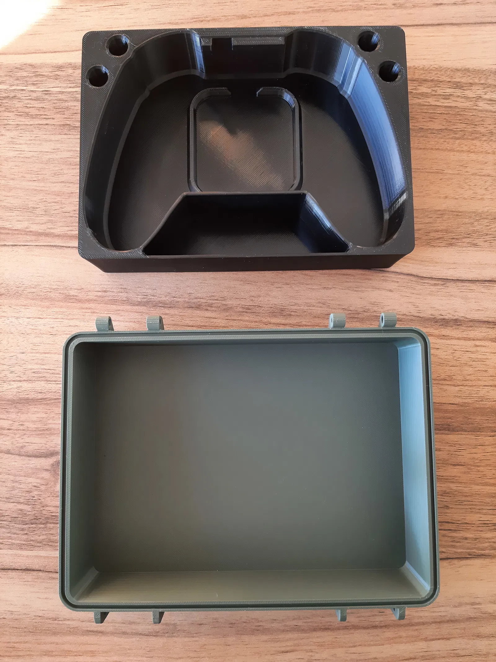Đây là bản remix của hộp đựng tay cầm Xbox để đi du lịch, mình tách phần ruột (interior) ra khỏi phần vỏ ngoài (exterior). Nhờ vậy mình có thể in phần bên trong bằng TPU (mềm hơn), còn phần vỏ ngoài thì in bằng PLA cứng. Cách này cũng giúp bạn in phần trong và phần ngoài với màu khác nhau một cách dễ dàng.