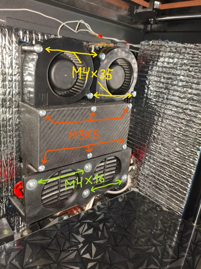 Cần ốc M4x16 hoặc M4x14 để gắn miếng sưởi vào cái bracket.