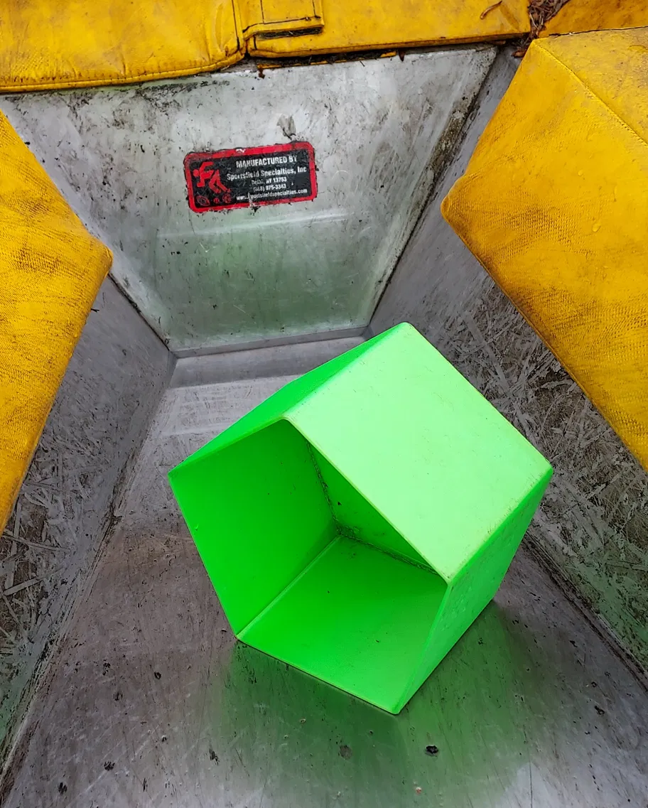 Mình thiết kế một cái cup đơn giản theo đúng hình dáng của pole vault box để tối đa lượng nước có thể múc/loại bỏ trong mỗi lần sử dụng.