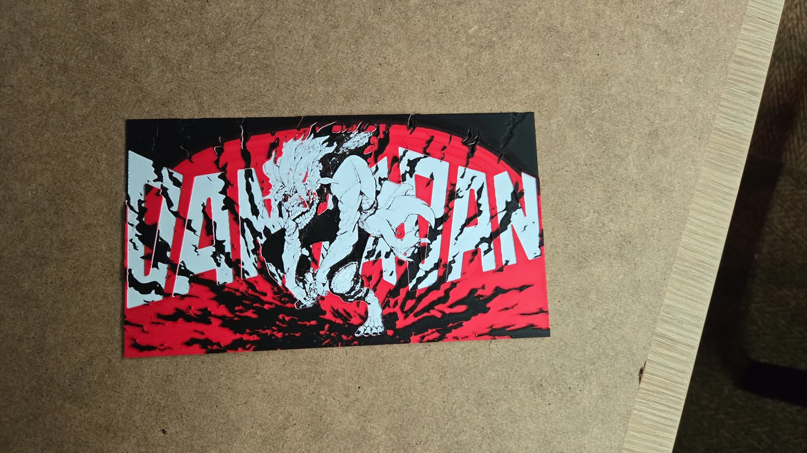 Bản remake nhân vật Ken Takakura (Dandadan) bằng HueForge, in multicolor với 3 filament. Kích thước 200x112.5mm, khuyến nghị 100% infill, layer height 0.08mm và làm theo lịch swap theo từng layer.