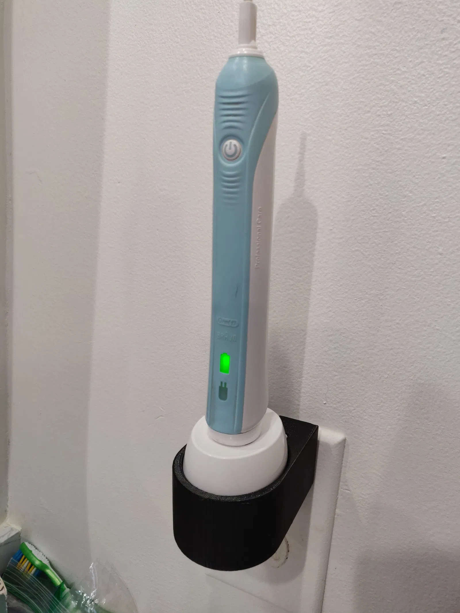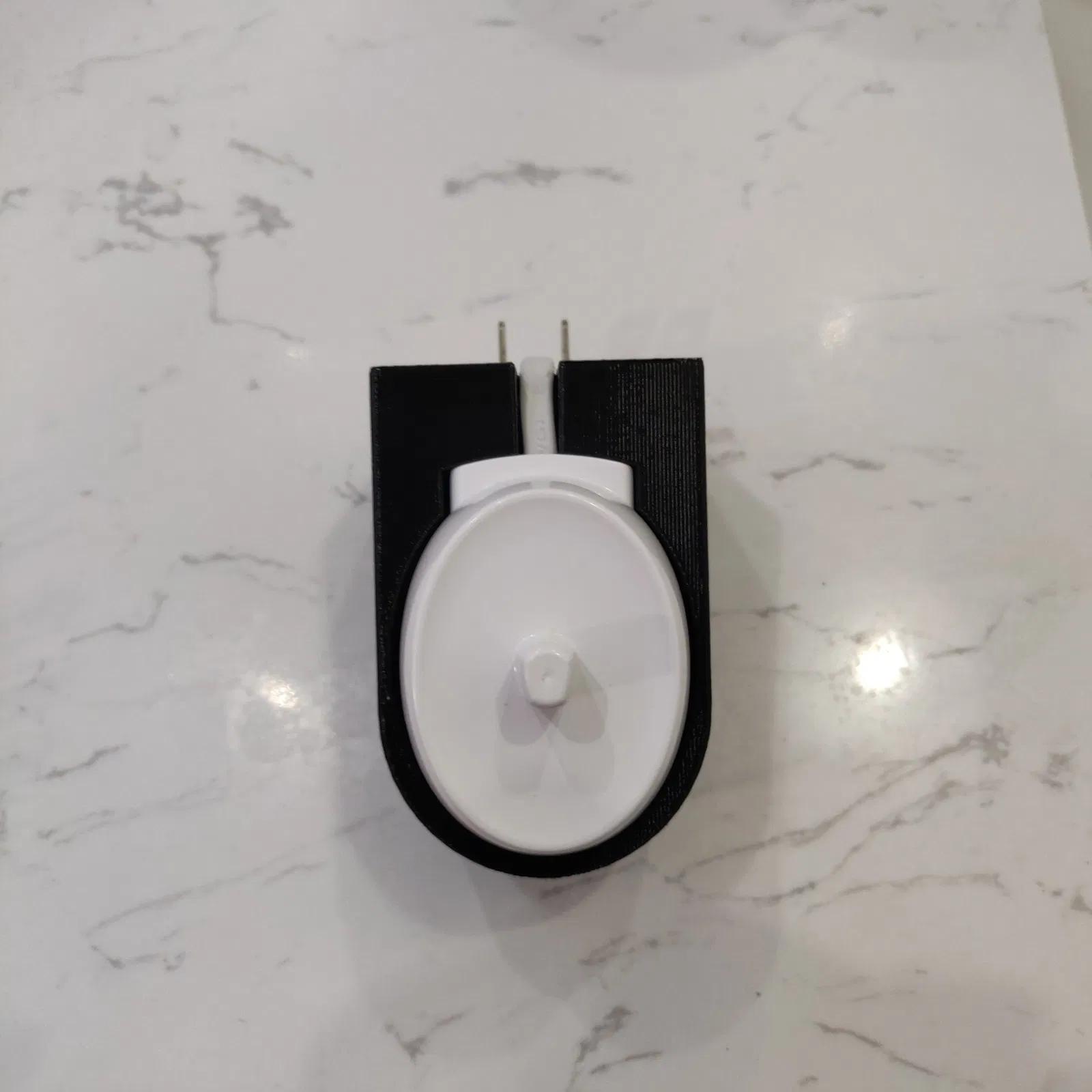 đã làm lại phiên bản phích cắm của Đức của bộ sạc bàn chải đánh răng B này để phù hợp với mô hình phích cắm của Hoa Kỳ. Độ dài thêm của dây có thể được nhét vào khoang dưới cùng cho vẻ ngoài bóng bẩy đó. Giá đỡ phích cắm có các tab nhỏ để tự giữ phích cắm và toàn bộ phần vẫn thẳng đứng với bàn chải đánh răng tại chỗ. Nếu ổ cắm tường của bạn bị hao mòn, nó có thể không đủ chặt để hỗ trợ trọng lượng.
