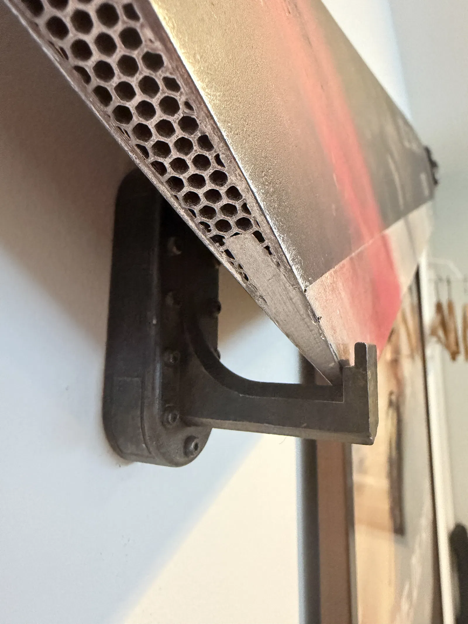 Móc treo gắn tường dùng để trưng bày Rotor Blade Sword, thiết kế mang vibe quân sự/hàng không, nhìn cứng cáp và “mechanical”. Phù hợp treo trưng bày nhiều món đồ tương tự.