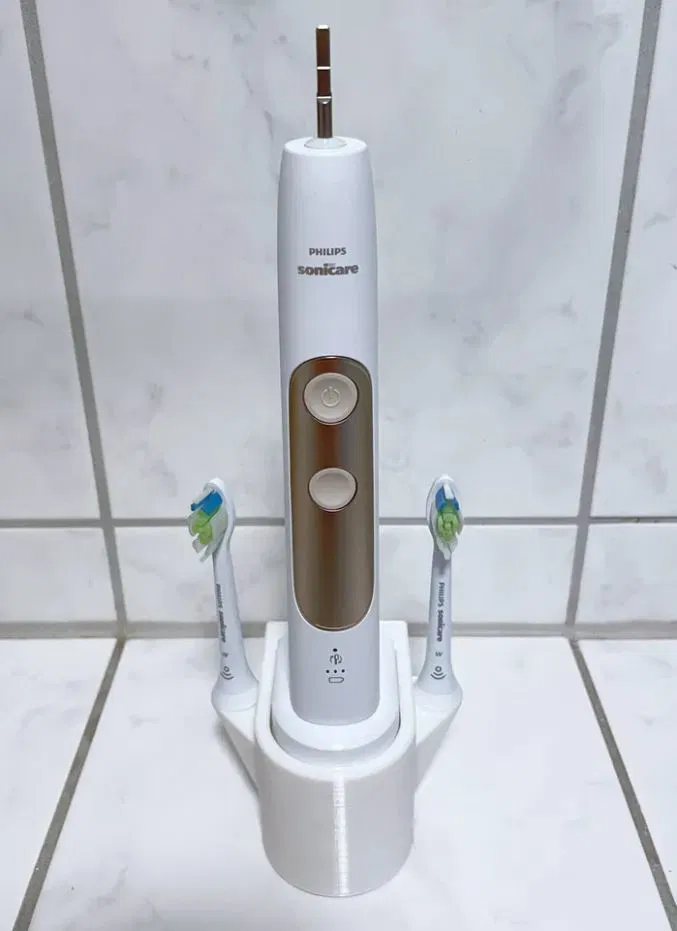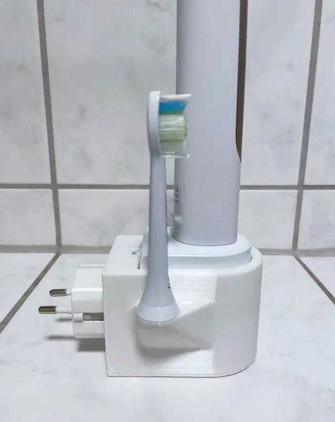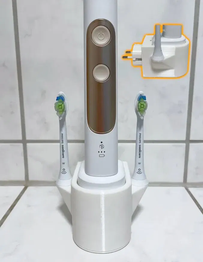 Trạm sạc cho Philips Sonicare Charger với hai giá đỡ đầu bàn chải. Nó cắm trực tiếp vào phích cắm Schuko.