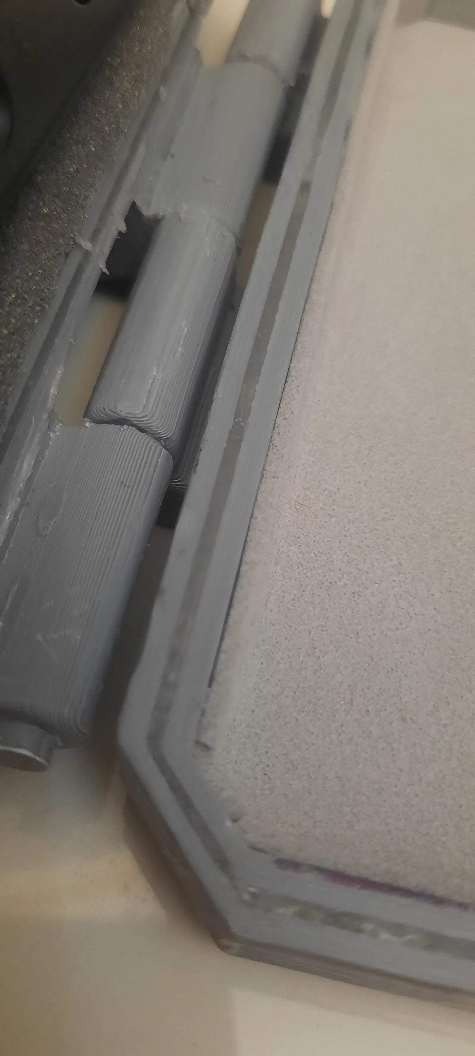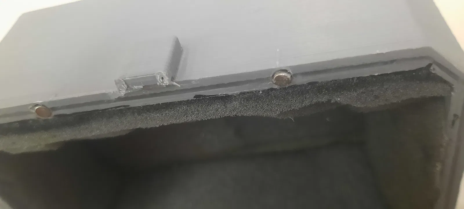 Các rãnh ở mép dùng để đặt gioăng nhằm giảm bụi/nước lọt vào và giúp khít hơn, tăng chất lượng lắp ráp (lưu ý: hộp sẽ không chống nước). Để làm gioăng theo kích thước riêng, bạn chỉ cần keo nến và dao rọc giấy. Cách làm đơn giản: bơm keo nến dọc theo mép của cả hai phần, cố gắng lấp đầy rãnh, chờ keo nguội và cứng lại, rồi gọt phần dư bằng dao rọc để bề mặt phẳng đều.