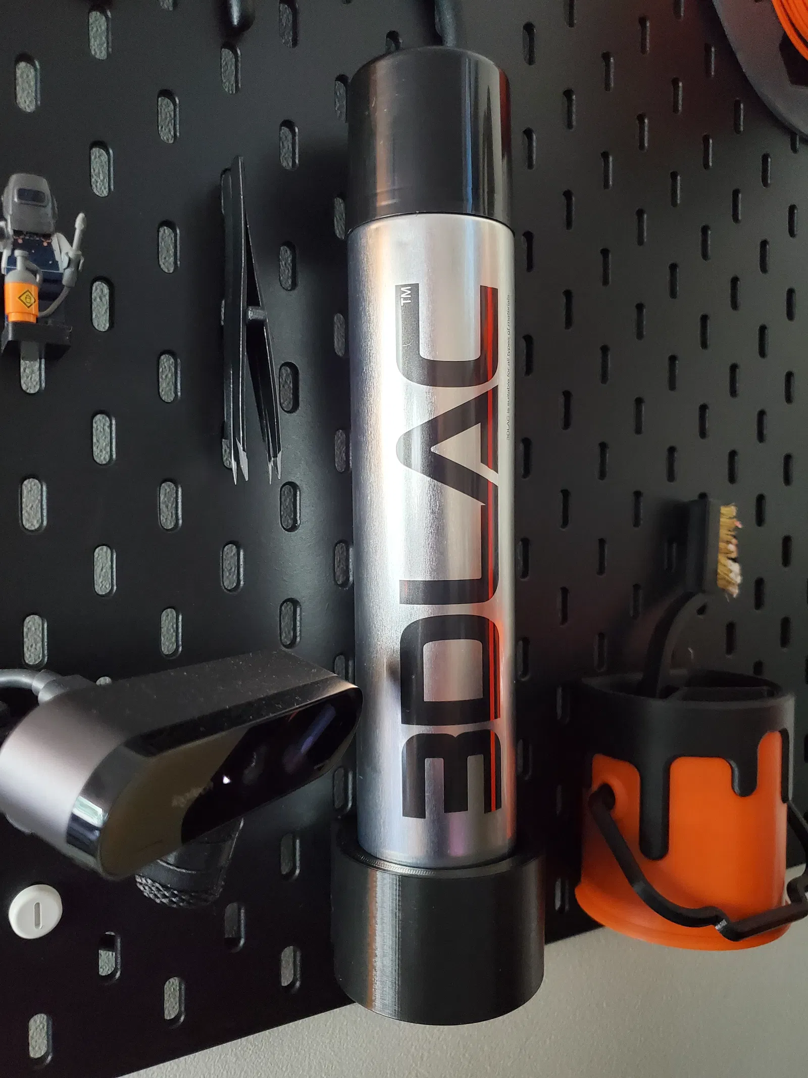 Remix từ series Skadis bottle của MKE Dan, tăng chiều cao và nới đường kính trong lên 55mm để vừa lon xịt 3DLac hoặc chai/bình cỡ lớn (tầm 2-1/8" ID). Có kèm thông số in PLA tham khảo.