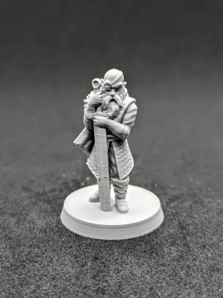 Miniature tỉ lệ 28mm bandit swordsman, một veteran dày dạn và là thành viên thứ tư của băng 5 người. Tối ưu in FDM không cần supports; chi tiết đẹp với nozzle 0,2 và layer height 0,08 mm.