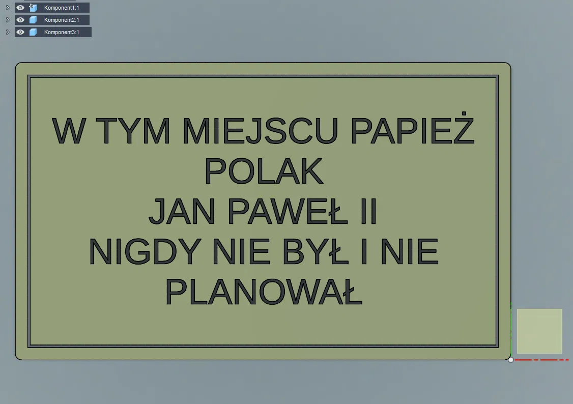 Mẫu bảng chữ ghi: “Tại nơi này Giáo hoàng Ba Lan John Paul II chưa từng đến và cũng không dự tính”. Khi in, nên scale giảm component 2 1/3%; hoặc giảm cả component 1 và 2 1/3% để khớp.