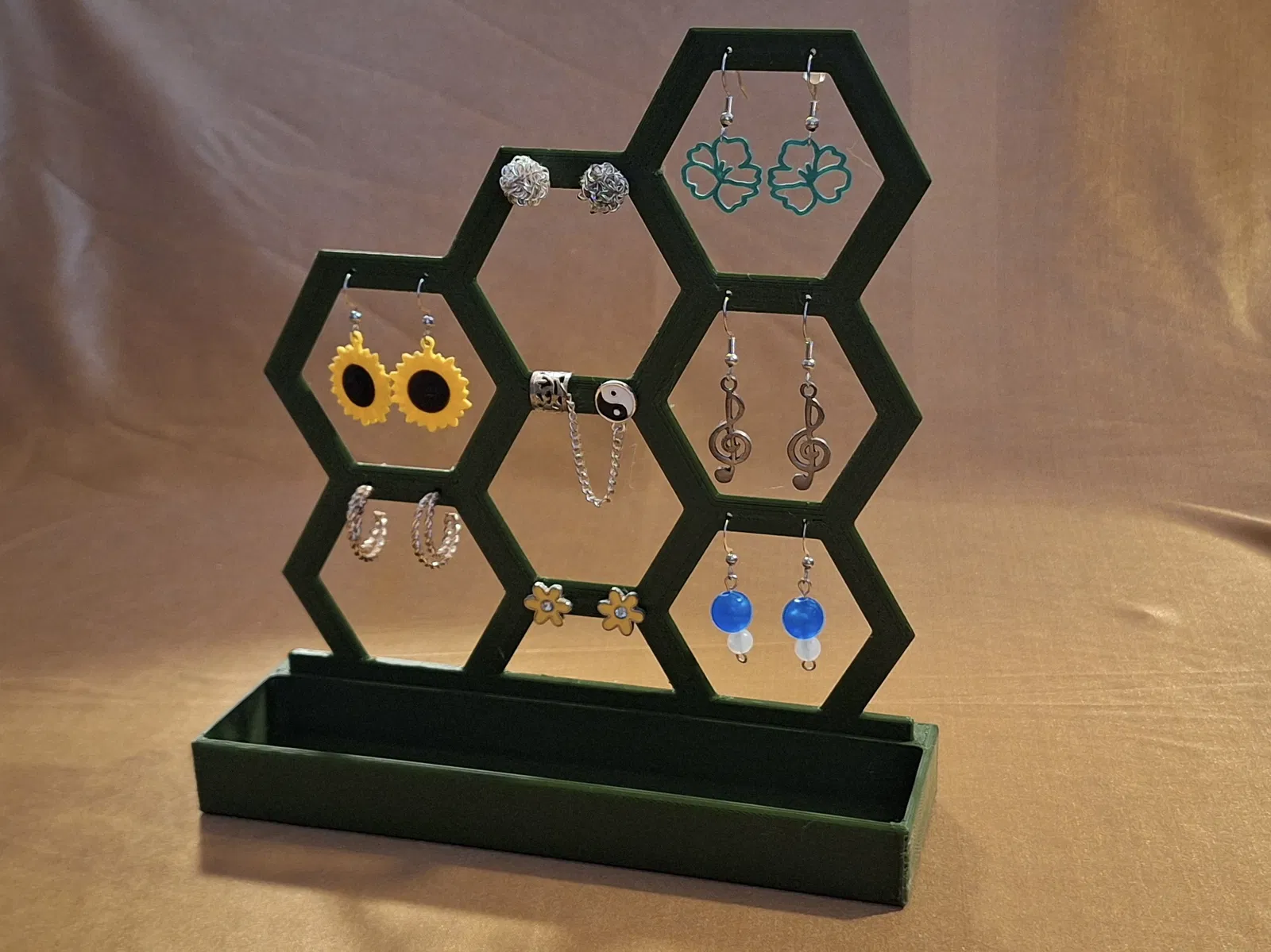 Bạn có thể chọn 2 bề ngang: stand rộng 3 hoặc 4 hình lục giác. Tương ứng, bạn có thể để tối đa 8 hoặc 11 đôi khuyên tai. Khuyên tai dư có thể để thêm trong khay (thông tin bên dưới ⬇)