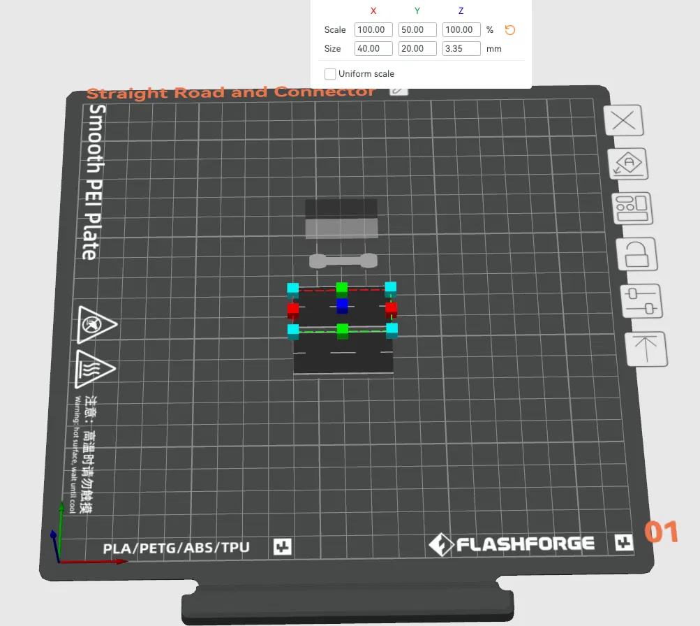 Mẫu đường thẳng 2 làn theo tỷ lệ N, đi kèm connector để nối các đoạn đường lại với nhau. Phù hợp cho layout mô hình tàu hỏa, dễ in 3D và lắp ghép theo nhu cầu.