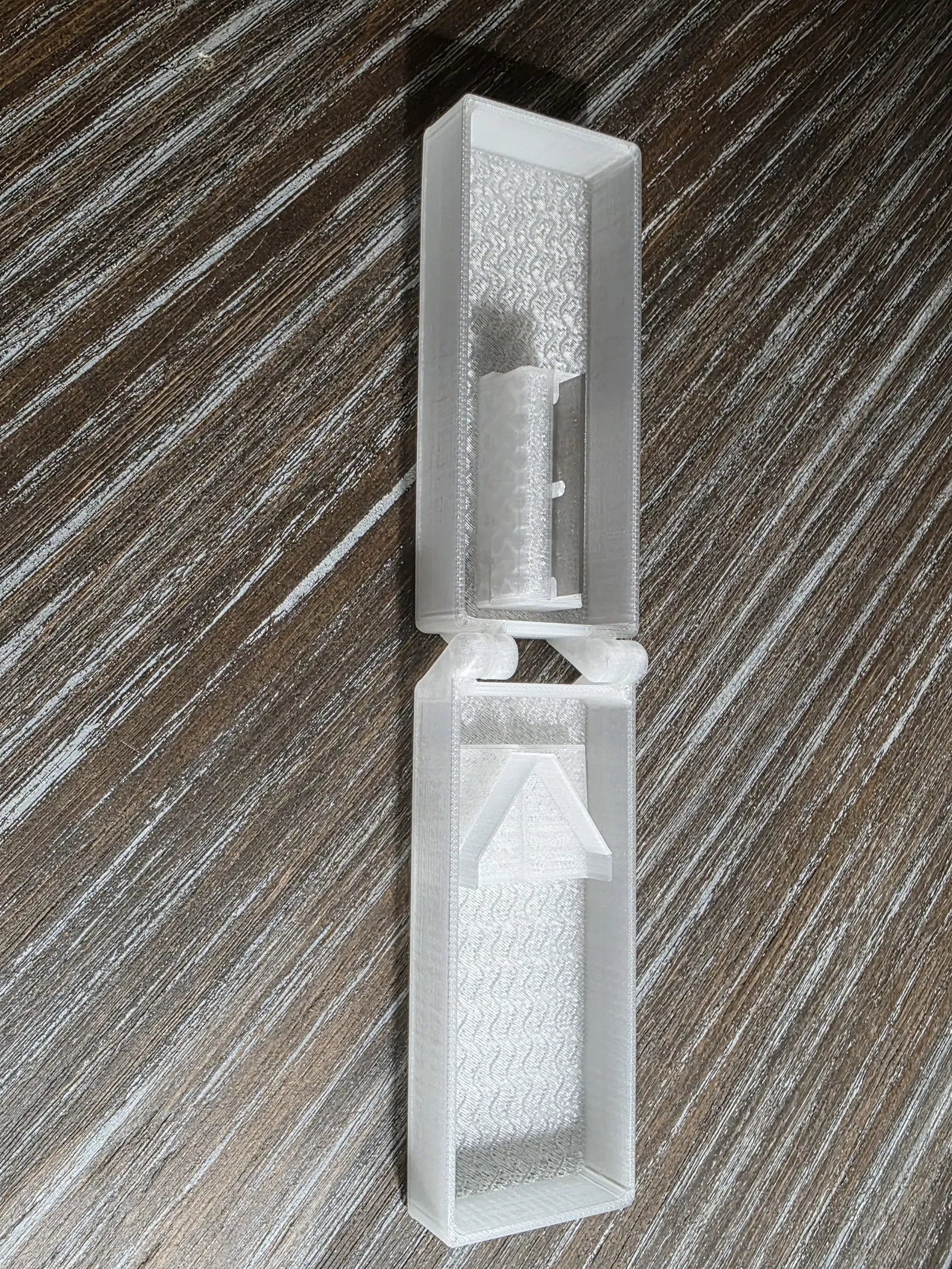 Phần bản lề cho nắp trên và phần đáy của pill cutter được thiết kế để print-in-place.