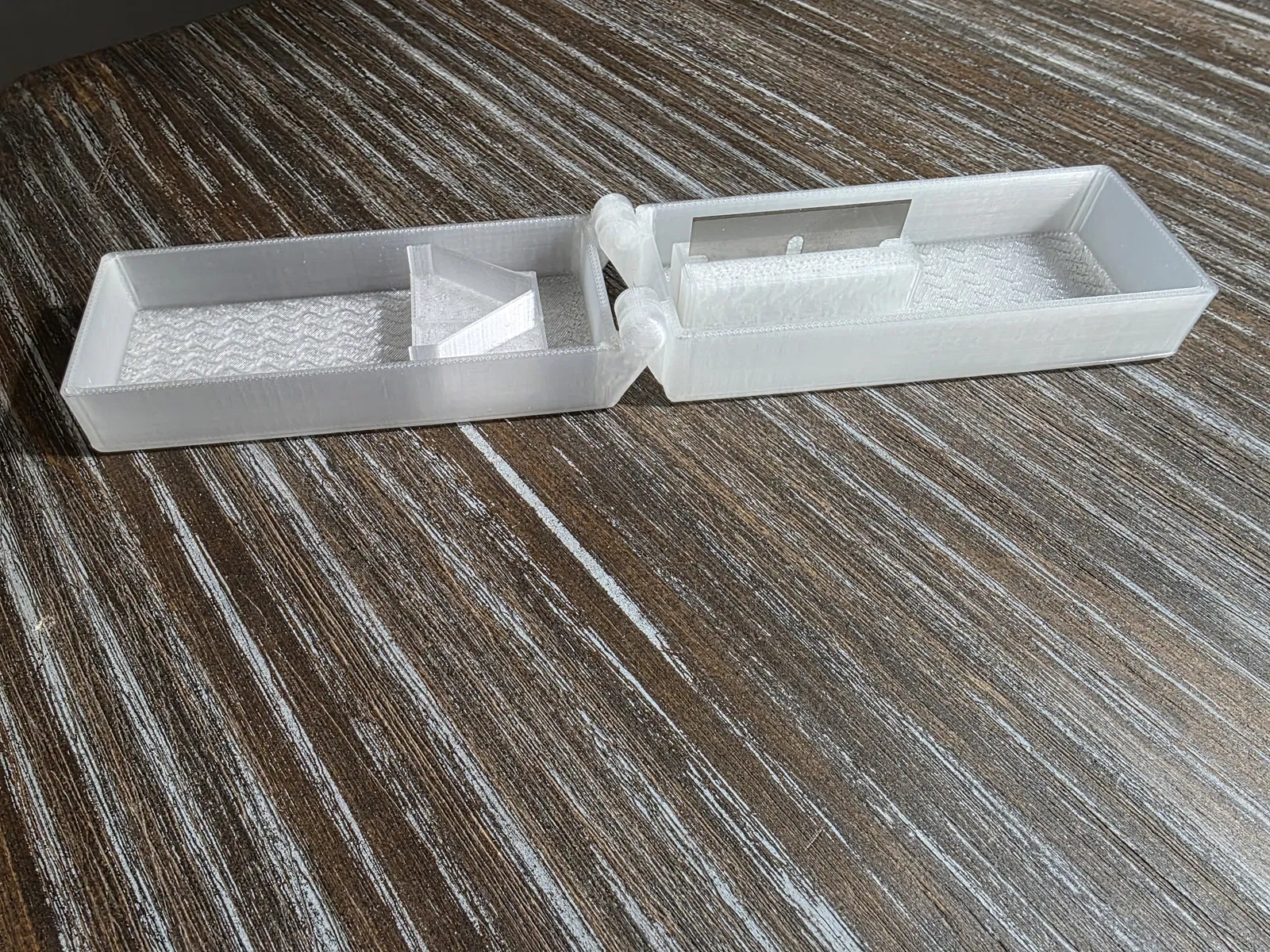 Mẫu Pill Cutter do mình tự thiết kế để dùng hằng ngày cho thuốc uống. Bản lề print-in-place, in tốt với PETG (kể cả PETG trong suốt) và ABS. Thiết kế dùng lưỡi single edge razor blade.