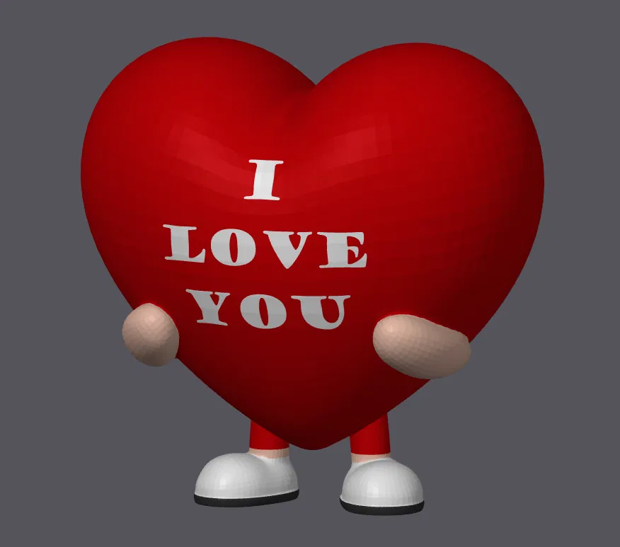 Đây là một nhân vật trái tim “fuzzy” có thể in 3D, đang cầm câu thần chú mạnh nhất từng được phát minh: “I LOVE YOU” viết HOA hết. Vì yêu bằng chữ thường là dành cho người nhát.