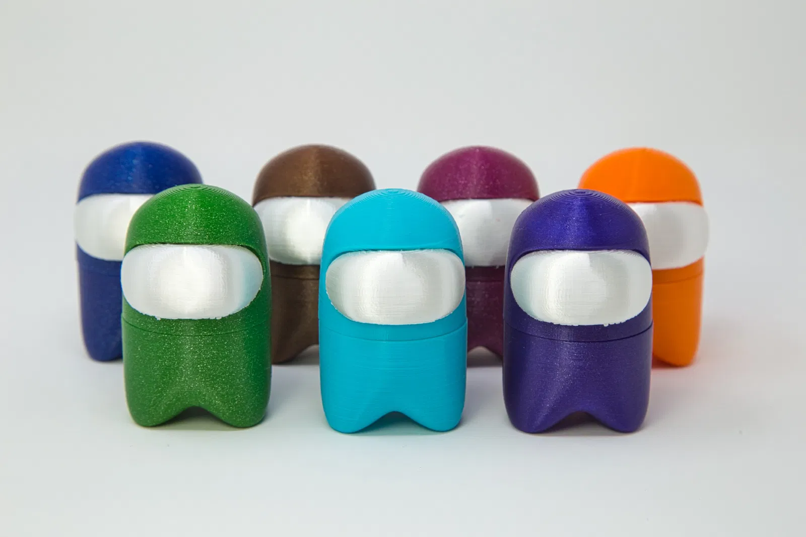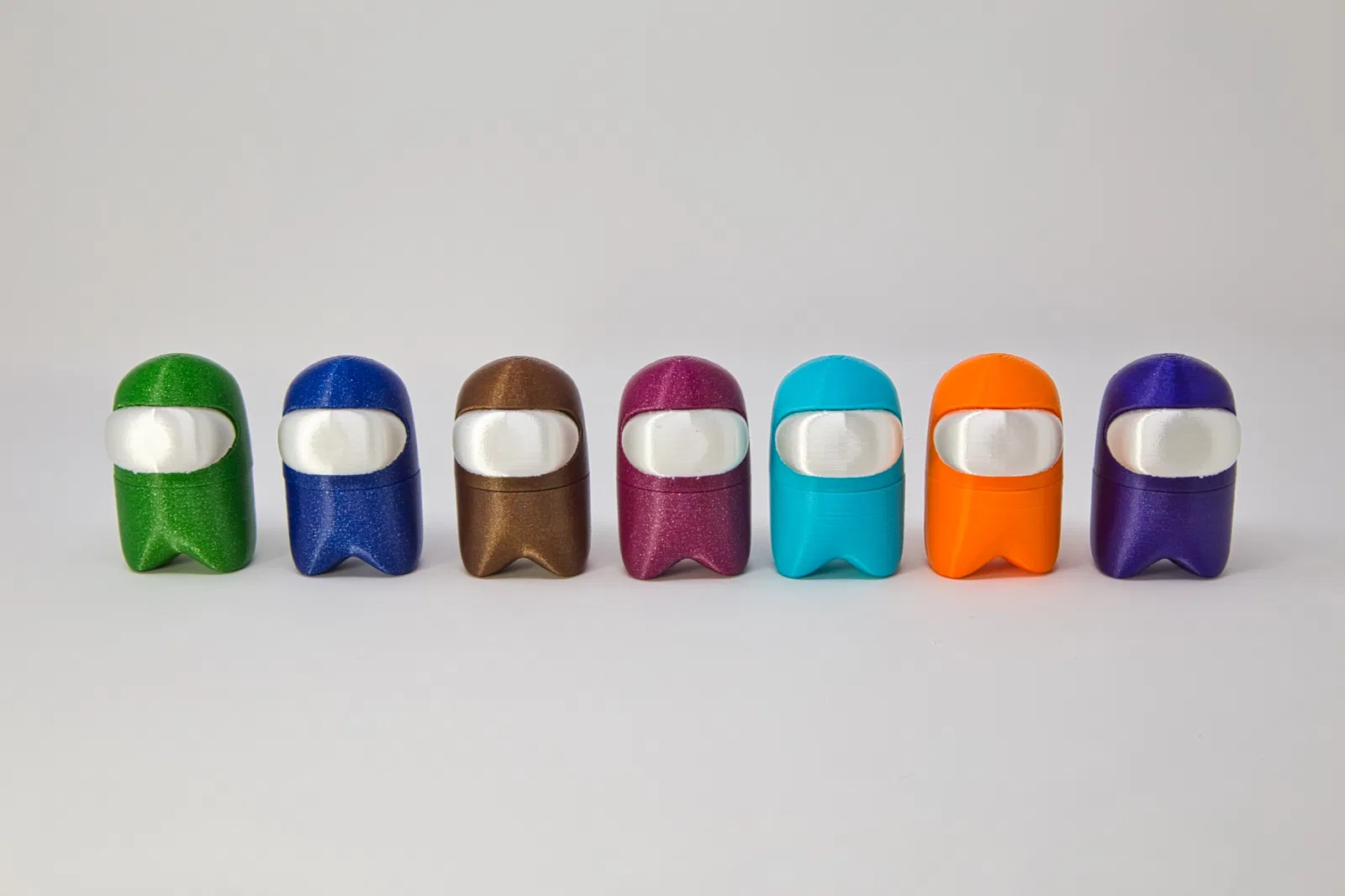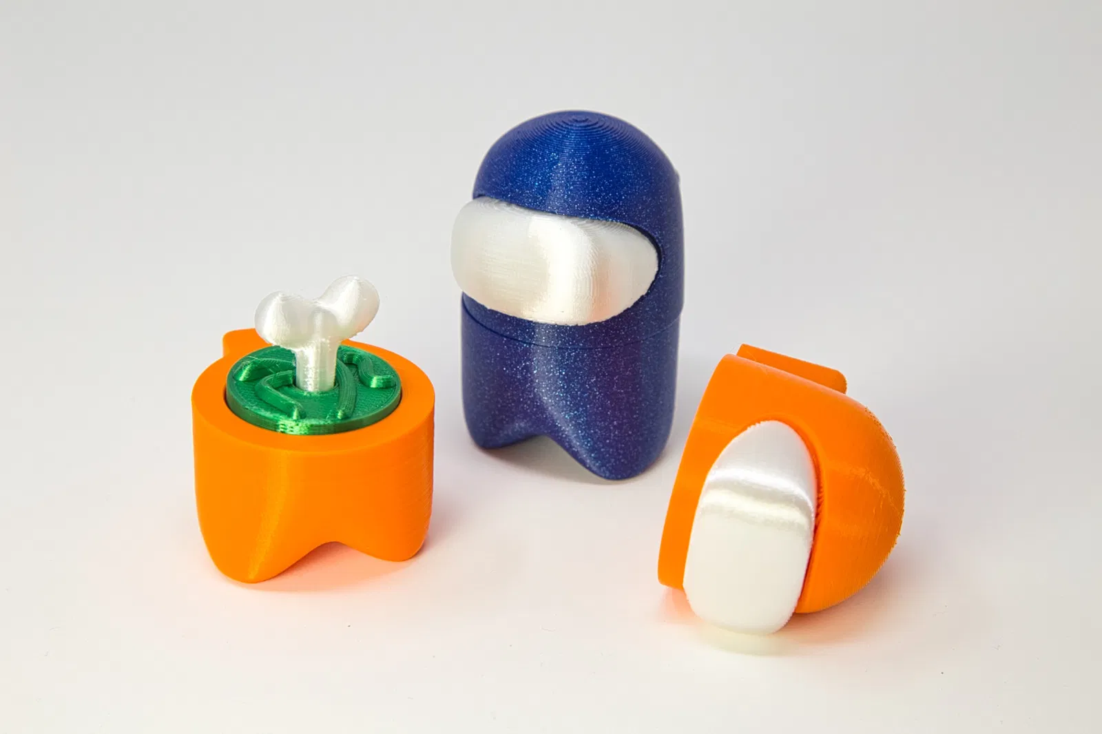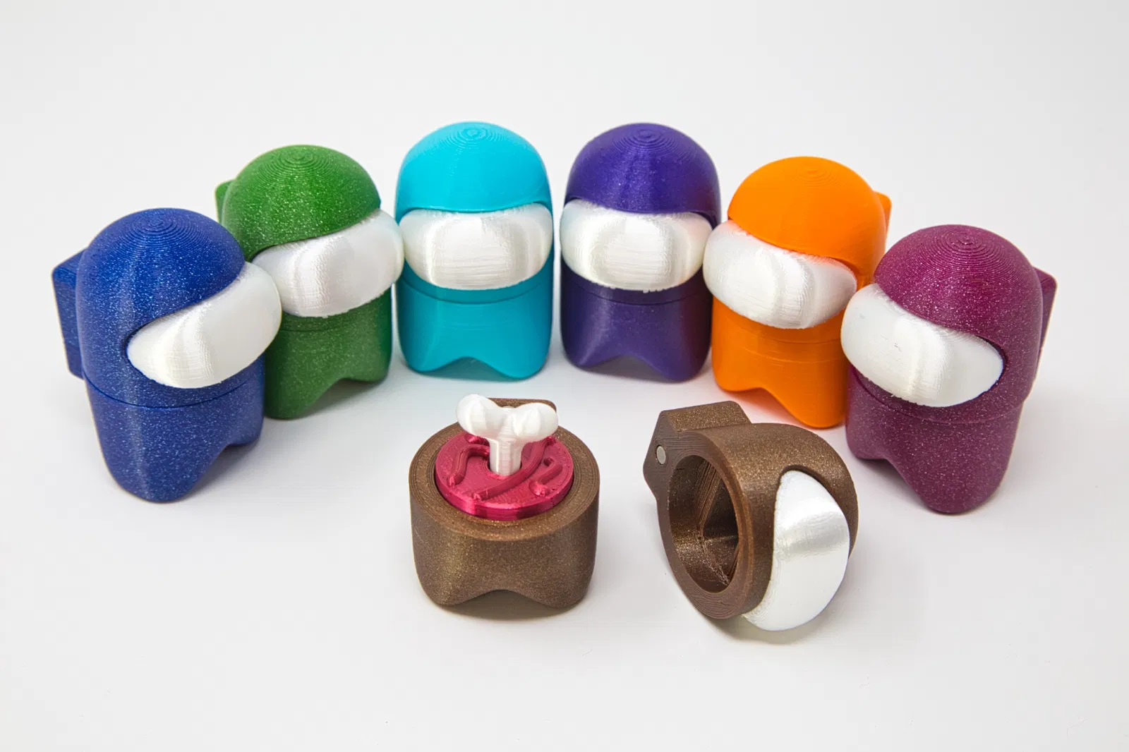 Bản cải tiến bộ nhân vật Among Us: chỉnh lại chân, đầu và “guts” để dùng được cả có/không nam châm với cùng chi tiết. Lỗ nam châm chuẩn cho đĩa 4mm x 2mm, khớp nối dễ lắp hơn, giảm post-processing.