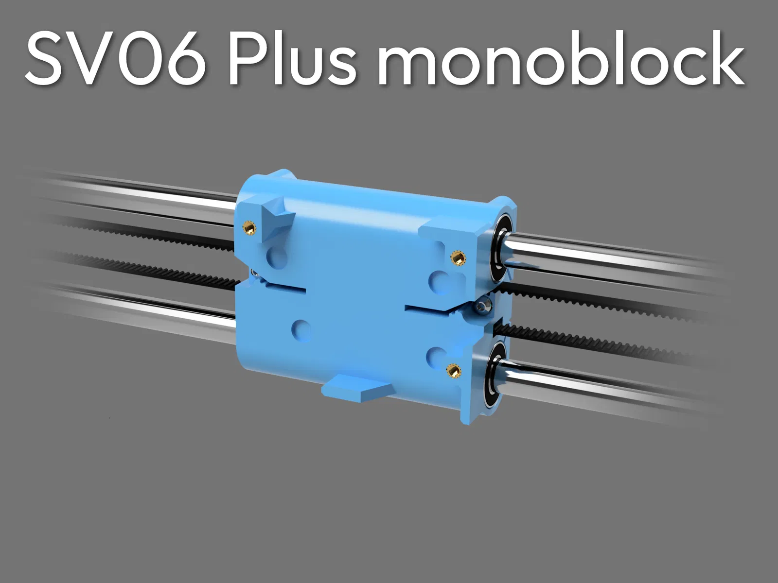 Carriage monoblock thay thế 100% cho cụm carriage zin của SV06 Plus, giữ nguyên footprint và các lỗ bắt vít phía sau để tương thích mod. Hỗ trợ 4 LM10UU/LM10LUU, in ít support, có belt lock.