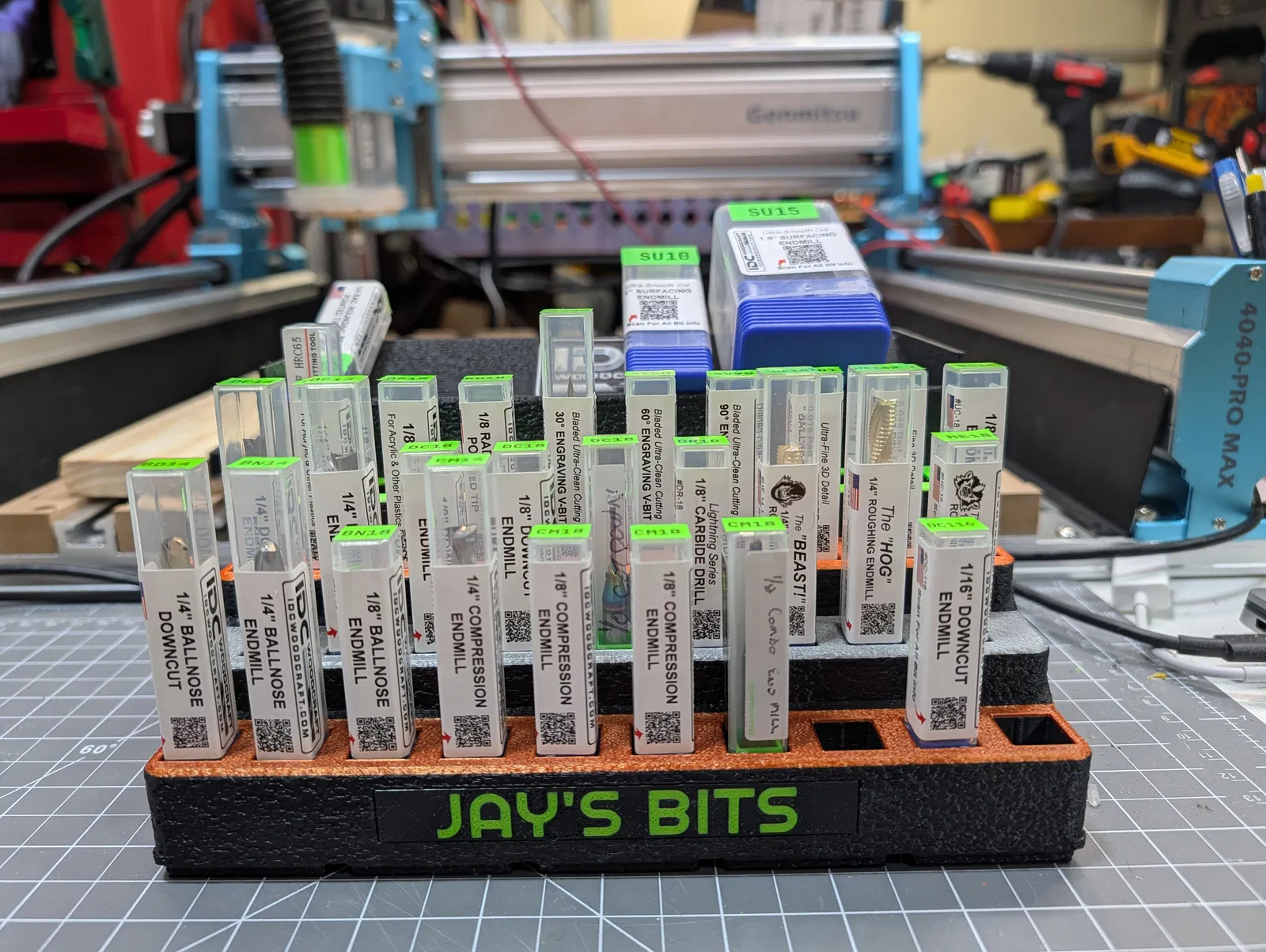 Khay sắp xếp mũi CNC cho IDC Woodcraft (cũng phù hợp nhiều loại mũi khác), gồm 2 bản: có/không có đế Gridifinity. Kèm name plate và logo plate, có hướng dẫn layer height, infill và mốc đổi màu khi in.