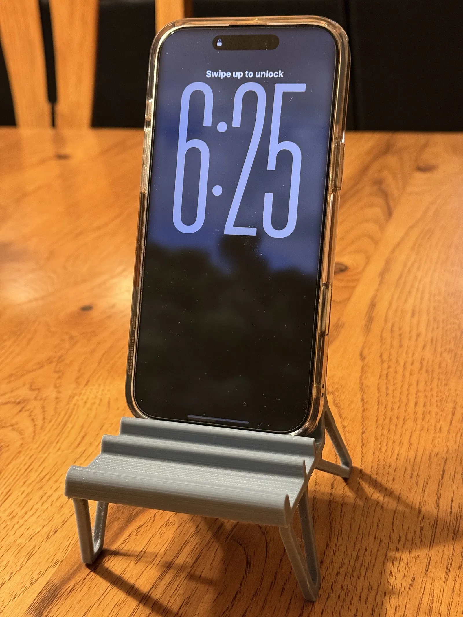 Kệ đỡ điện thoại hoặc thiết bị khác, kiểu dáng tương tự IKEA KRUBBET giá $4. Dễ in, phù hợp để kê phone/tablet/kindle; khuyến nghị infill 25%, organic supports trên build plate, 2 perimeters trở lên.