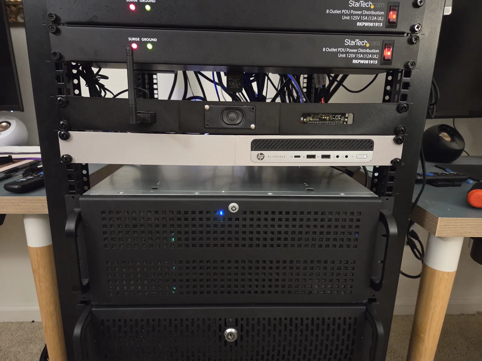 Bản remix từ mẫu “left blank” cho HP Elitedesk G3 mini, bổ sung kệ để gắn và giữ adapter nguồn. Thiết kế phù hợp nhiều kích thước adapter, tiện lắp đặt trong tủ rack 1U.