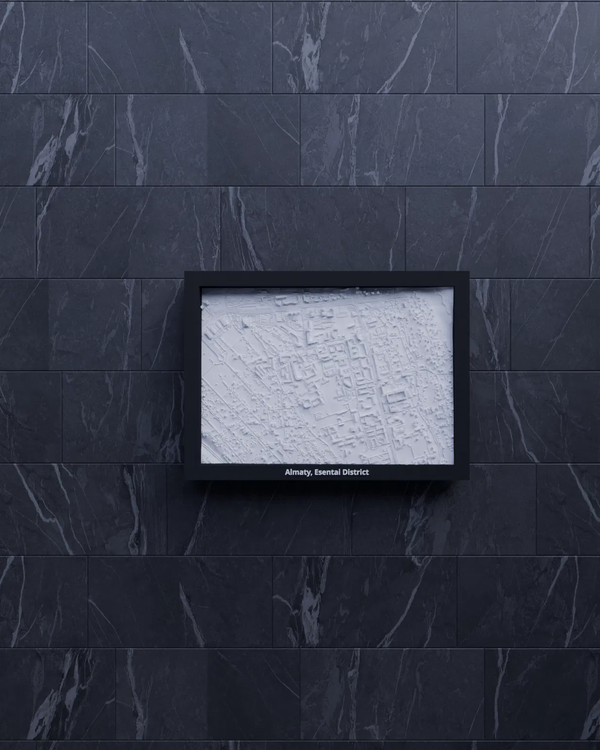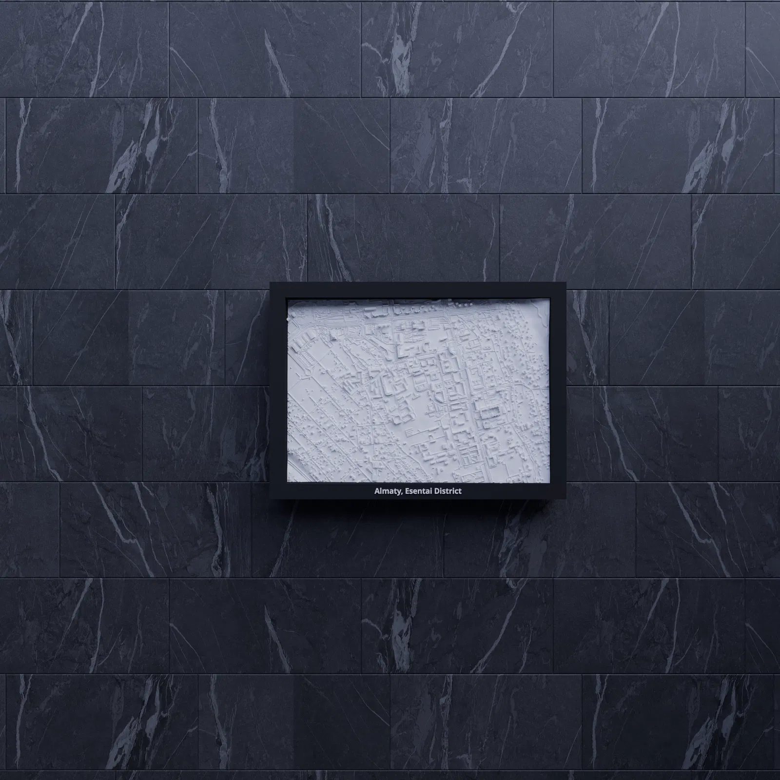 Mô hình thu nhỏ địa hình in 3D tái hiện Almaty, khu Esentai District (Kazakhstan) từ dữ liệu địa lý, tỷ lệ ~14913:1. Phù hợp trưng bày, học tập, hoặc làm quà tặng; có nhiều tùy chọn frame kèm lỗ treo.