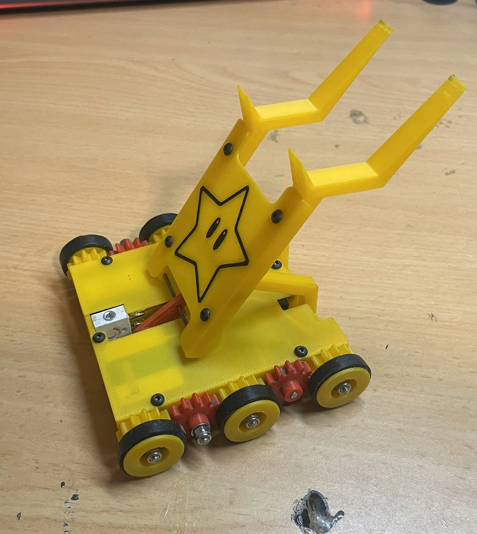 Lưu ý: combat robot này không được thiết kế để đối đầu đối thủ “phá hoại” (như metal spinners), nhưng cùng mẫu này nếu in bằng TPU thì đã chơi rất ổn, thậm chí còn thắng vài buổi meet hằng tháng ở khu mình.