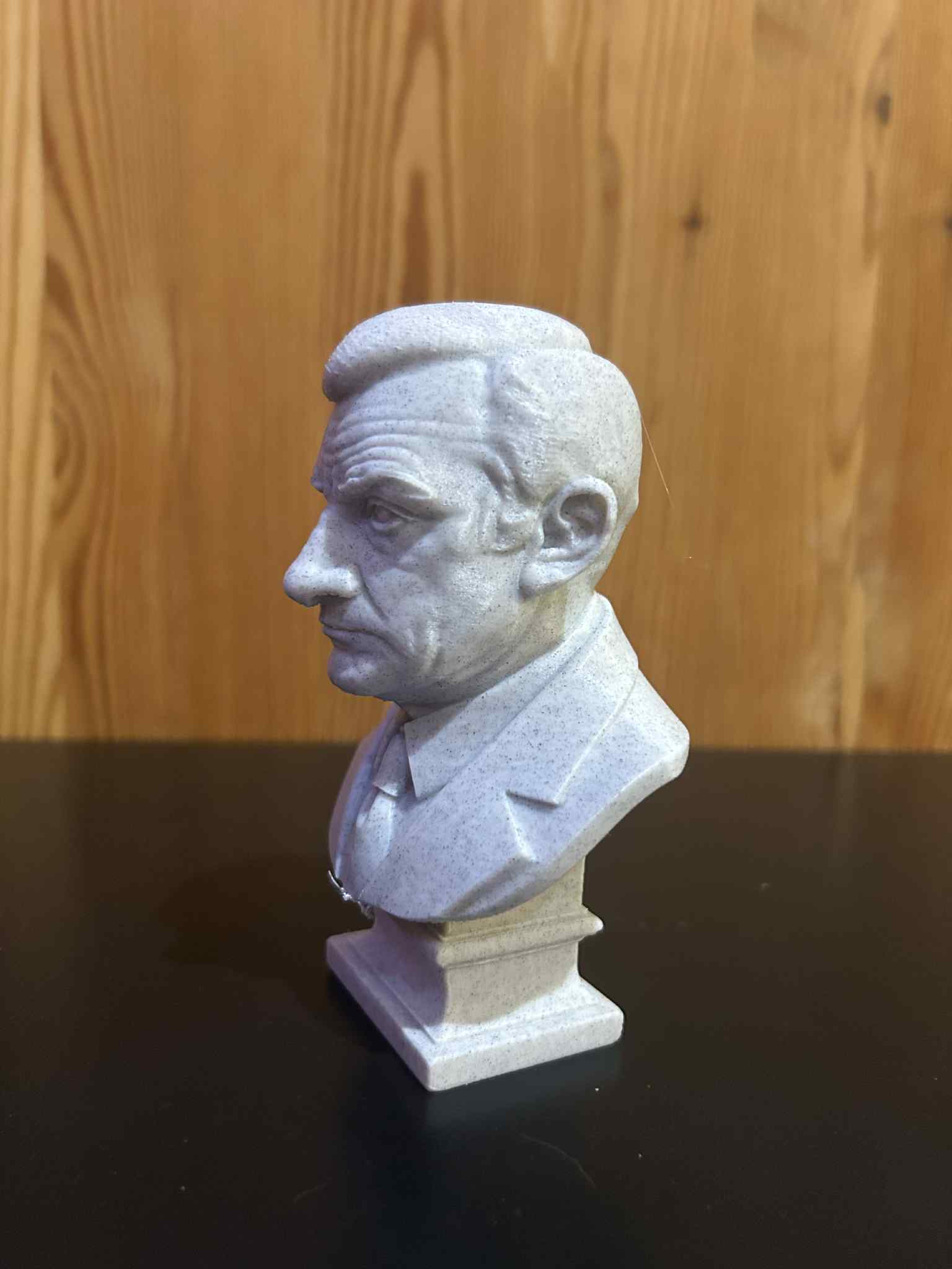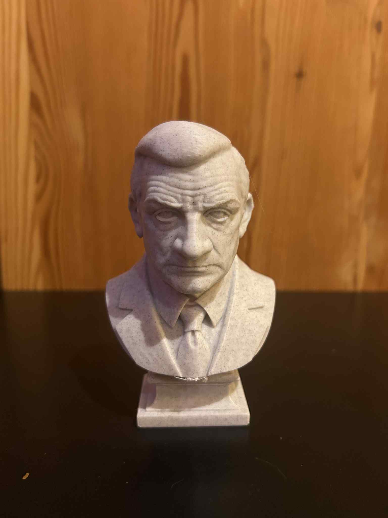 Tượng bán thân Lino Ventura tái hiện chân thực gương mặt rắn rỏi và thần thái điềm tĩnh từ bức ảnh nổi tiếng nhất của ông. Mẫu điêu khắc không lý tưởng hóa, tôn lên sức mạnh trầm lặng và nét chân thành của biểu tượng điện ảnh Pháp–Âu.