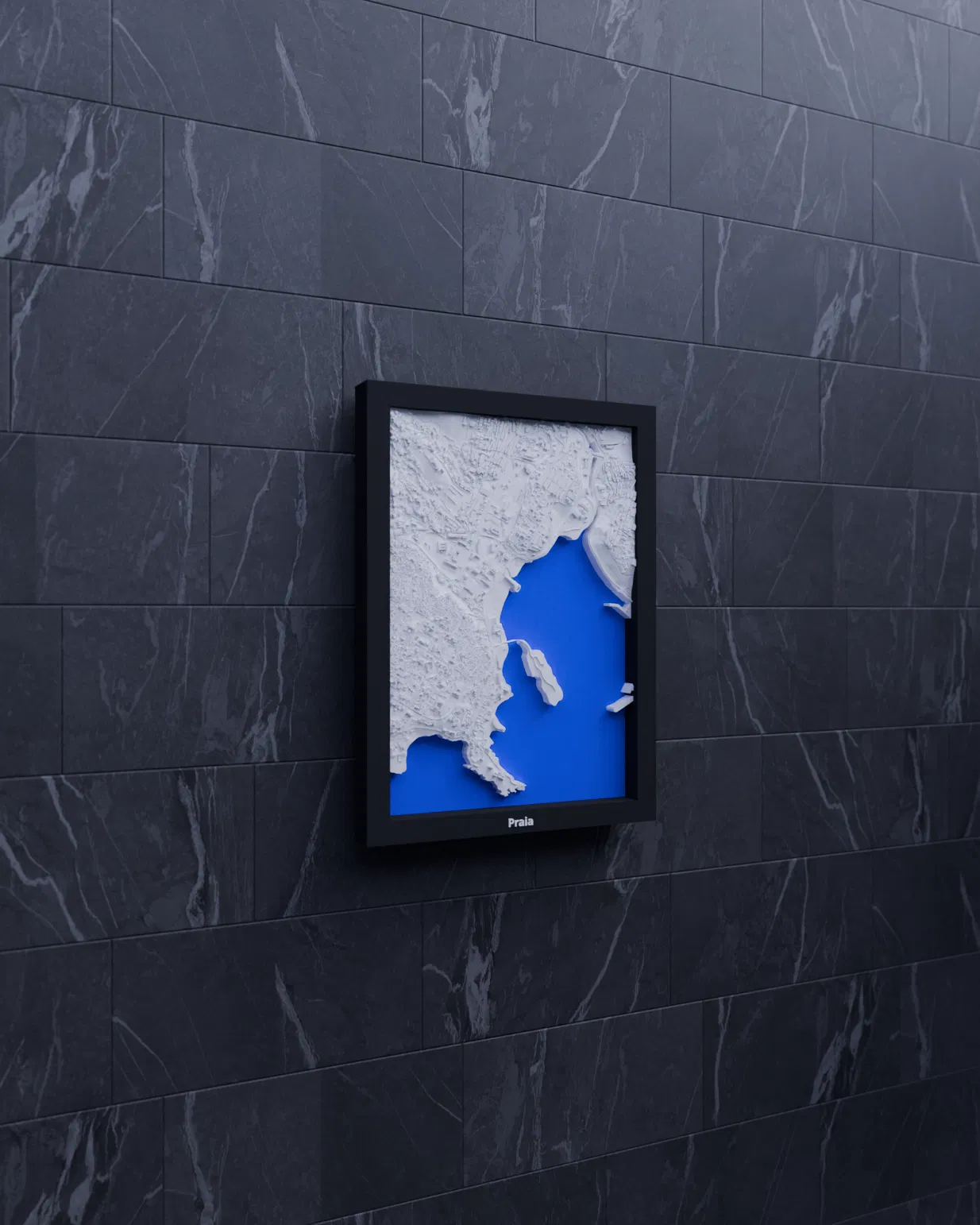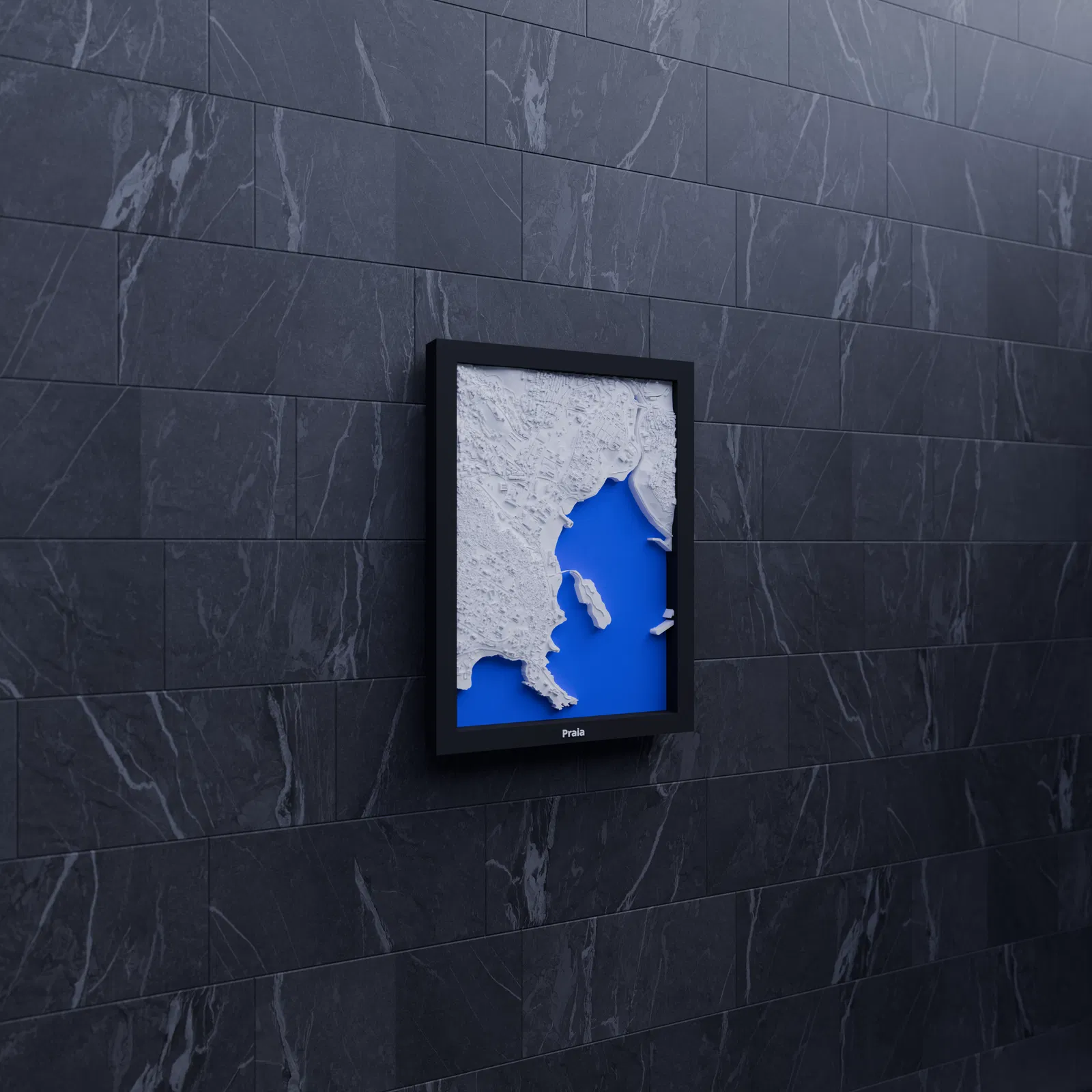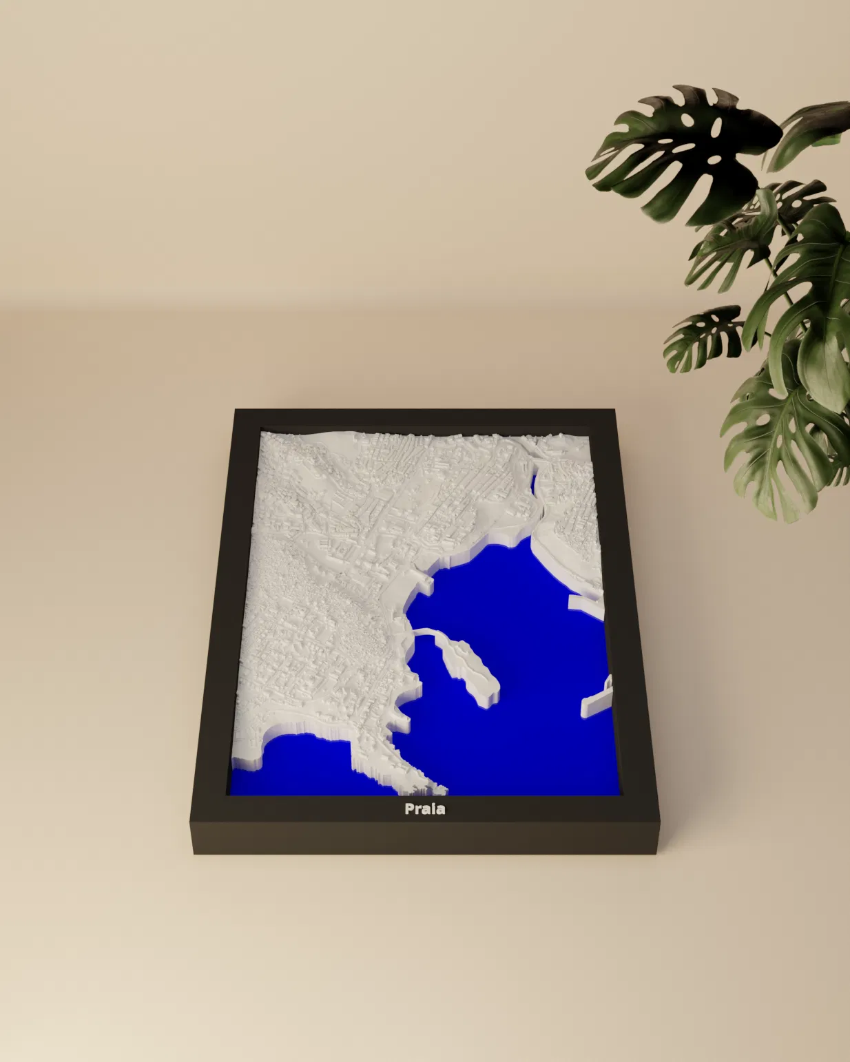 Mô hình thu nhỏ địa hình 3D của Praia (Cape Verde), dựng từ dữ liệu địa lý cho terrain chân thực. Thu nhỏ khu vực 1.972 x 2.796 km thành bản in 119.5 x 170.5 mm, kèm nhiều frame và hướng dẫn lắp ráp.