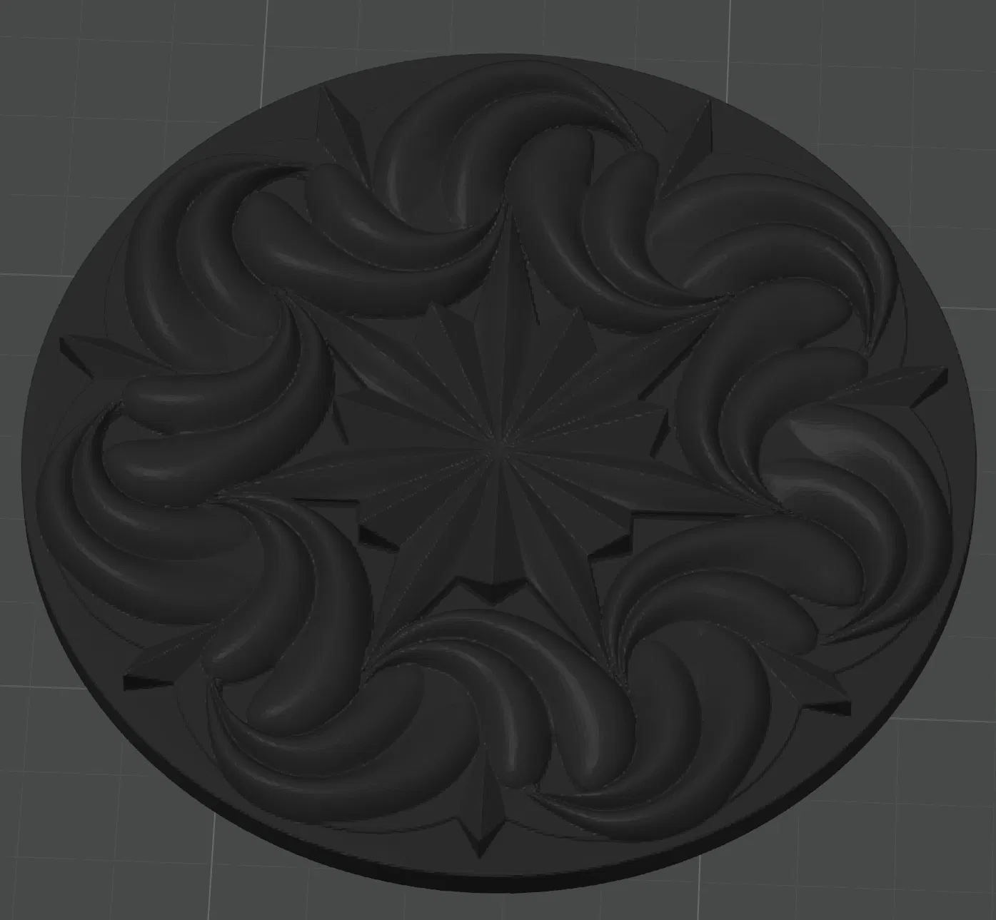 Một tấm plaque tròn kiểu trang trí cầu kỳ, ở giữa là một ngôi sao. Đây là bản remix từ một mẫu CNC miễn phí trên Thingiverse. Mình đã chỉnh sửa vài chỗ để sửa mesh và tối ưu cho in 3D, nên giờ chắc sẽ dùng ổn (mình chưa in thử).