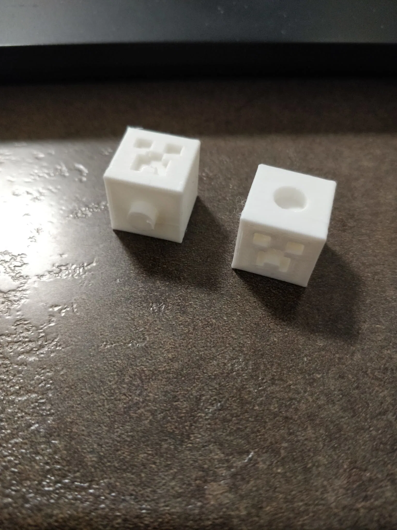 Bộ quân cờ checkers phong cách Creeper (Minecraft): gồm quân đơn “Creeper Checker” và quân đôi “Creeper Double Checker” để chồng lên khi tới cuối bàn cờ. Gợi ý in PLA, nozzle 0.4, layer 0.2, infill 10%.