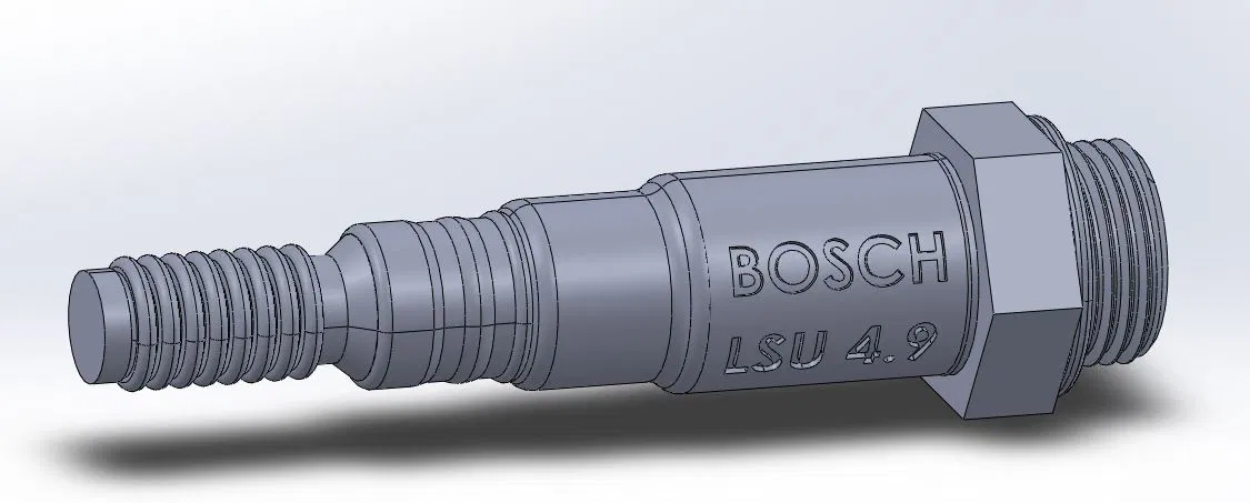 Dựa trên file CAD chính thức của Bosch LSU 4.9. Chỉ phần tip của cảm biến được cắt bớt (để tránh cấn vào ống khi ướm thử).