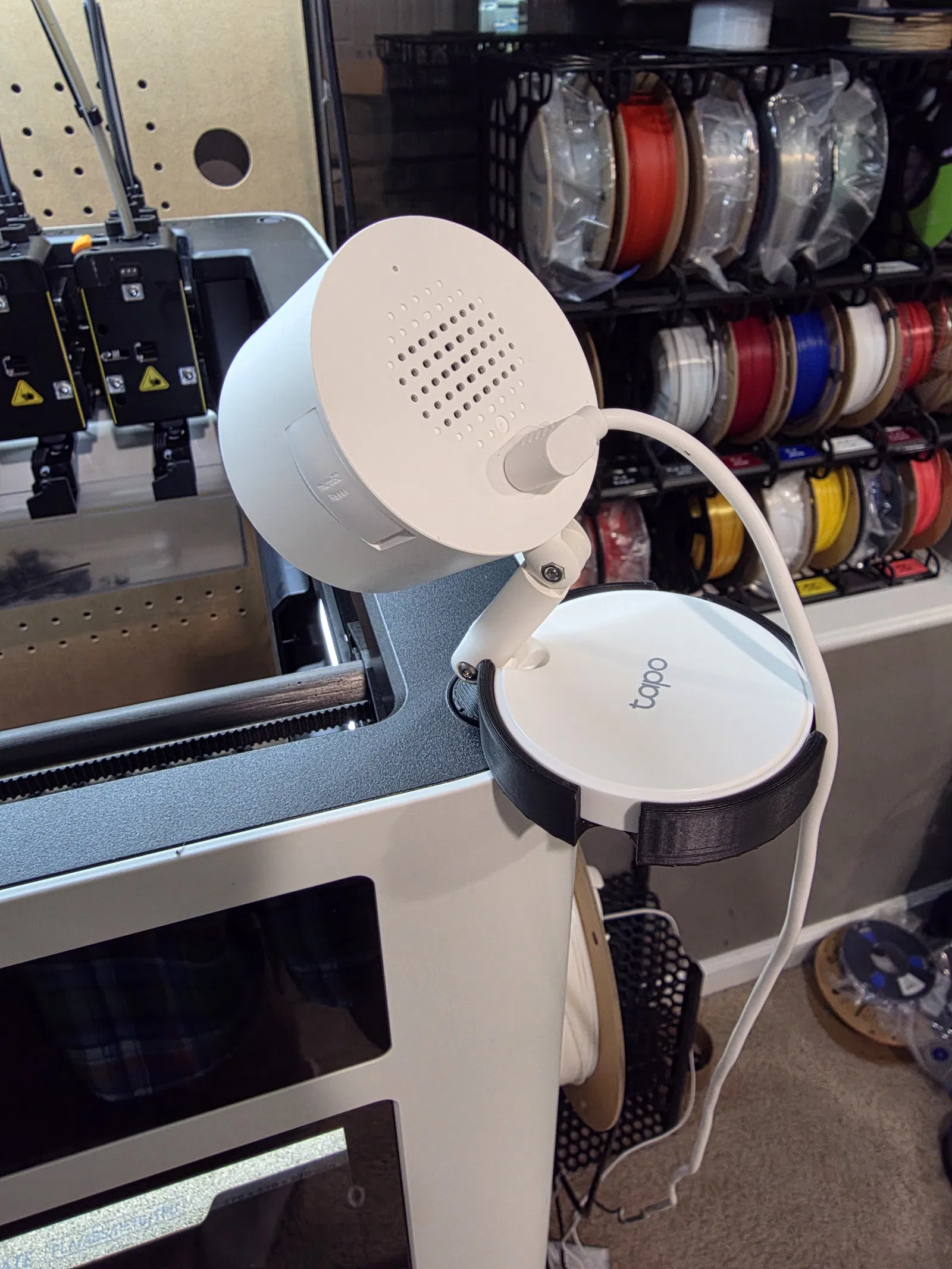 Mình làm một cái mount cho camera Tapo C120 để gắn lên Snapmaker U1. In bằng PLA và lắp vào vừa khít. Hình chụp màn hình camera nhìn hơi tệ thì bỏ qua giúp mình vì mình chưa chỉnh focus cho camera. Cuối cùng mình in đúng như hướng đặt trong file 3mf và thêm supports ở phần đáy vì phần đó bong ra rất dễ. Mình có kèm thêm file STEP nếu bạn muốn chỉnh sửa vì lý do nào đó. Có gì cần thay đổi thì nhắn mình biết nha.